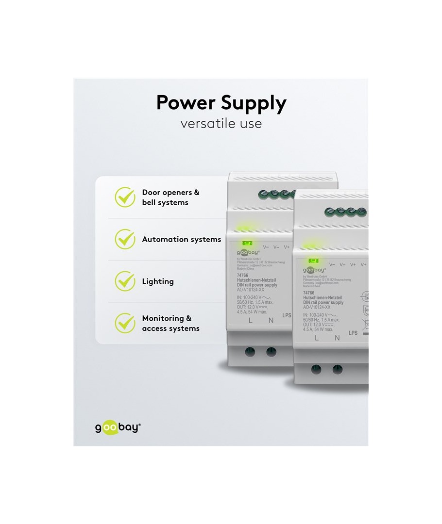 Strömförsörjningen är utformad för att skapa en sömlös övergång från 230V inmatning till en 12V DC utspänning med en strömkapacitet på 4,5A. Detta gör den idealisk för att driva LED-belysning och andra låga spänningstillämpningar.