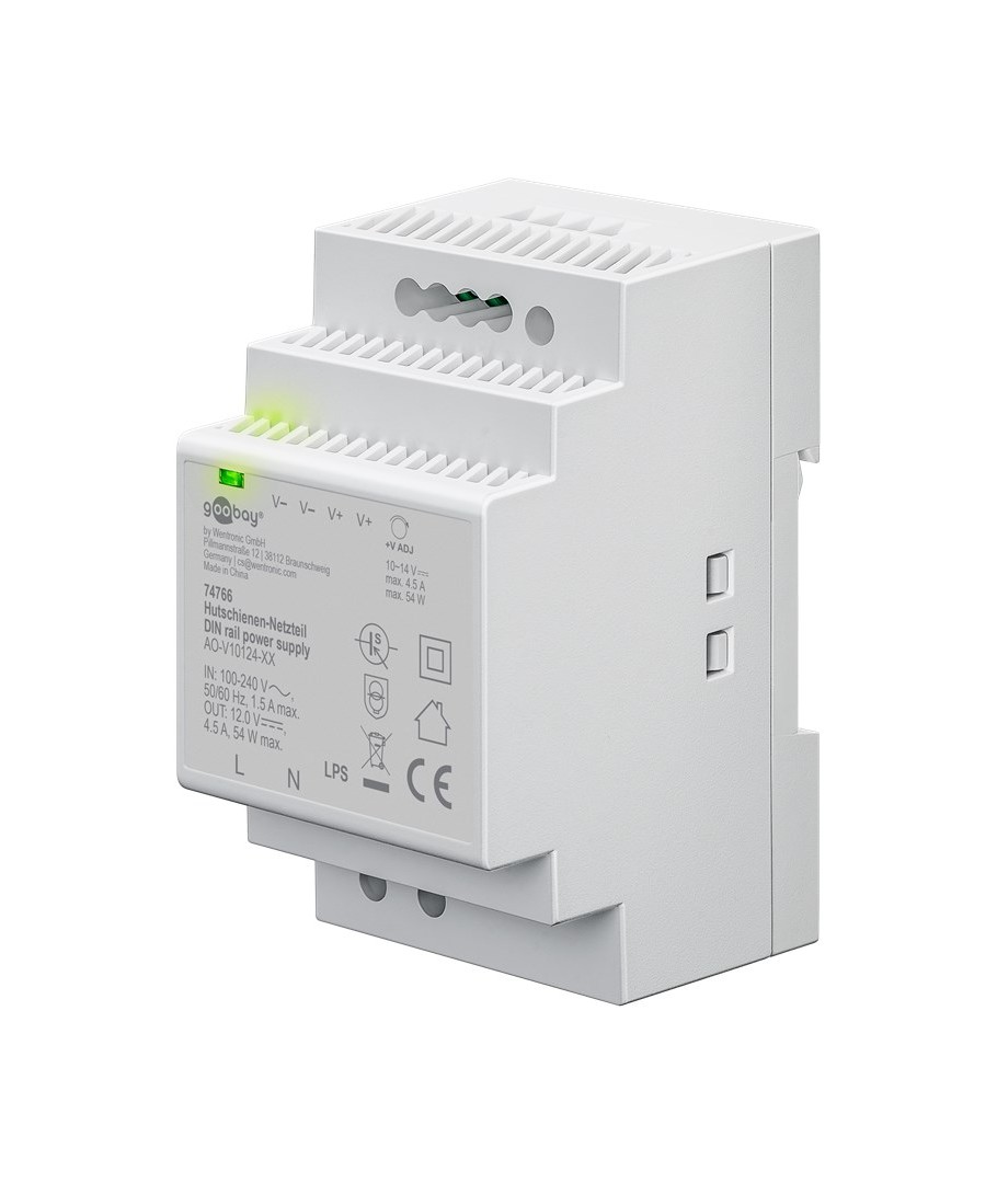 12V DC 4,5A strömförsörjning för DIN-skena montering.