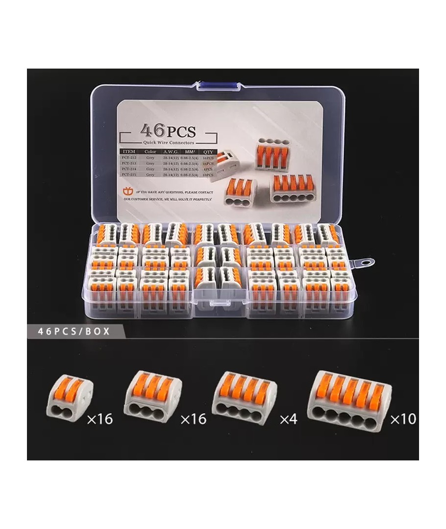 46 st. Skruvlös kopplingsklämma 0,32-2,5mm2, för 2/3/4/5 ledningar