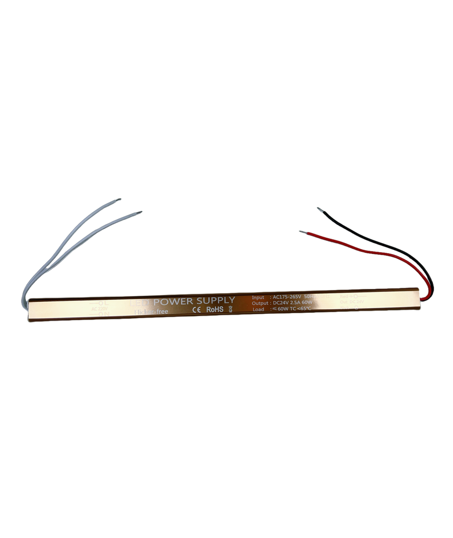 Den nya 60W strömförsörjningen 24V DC - 2,5A i en extra tunn slimmad modell levererar pålitlig ström utan flimmer och är perfekt för både inomhus- och utomhusbruk tack vare sin IP67-certifiering.