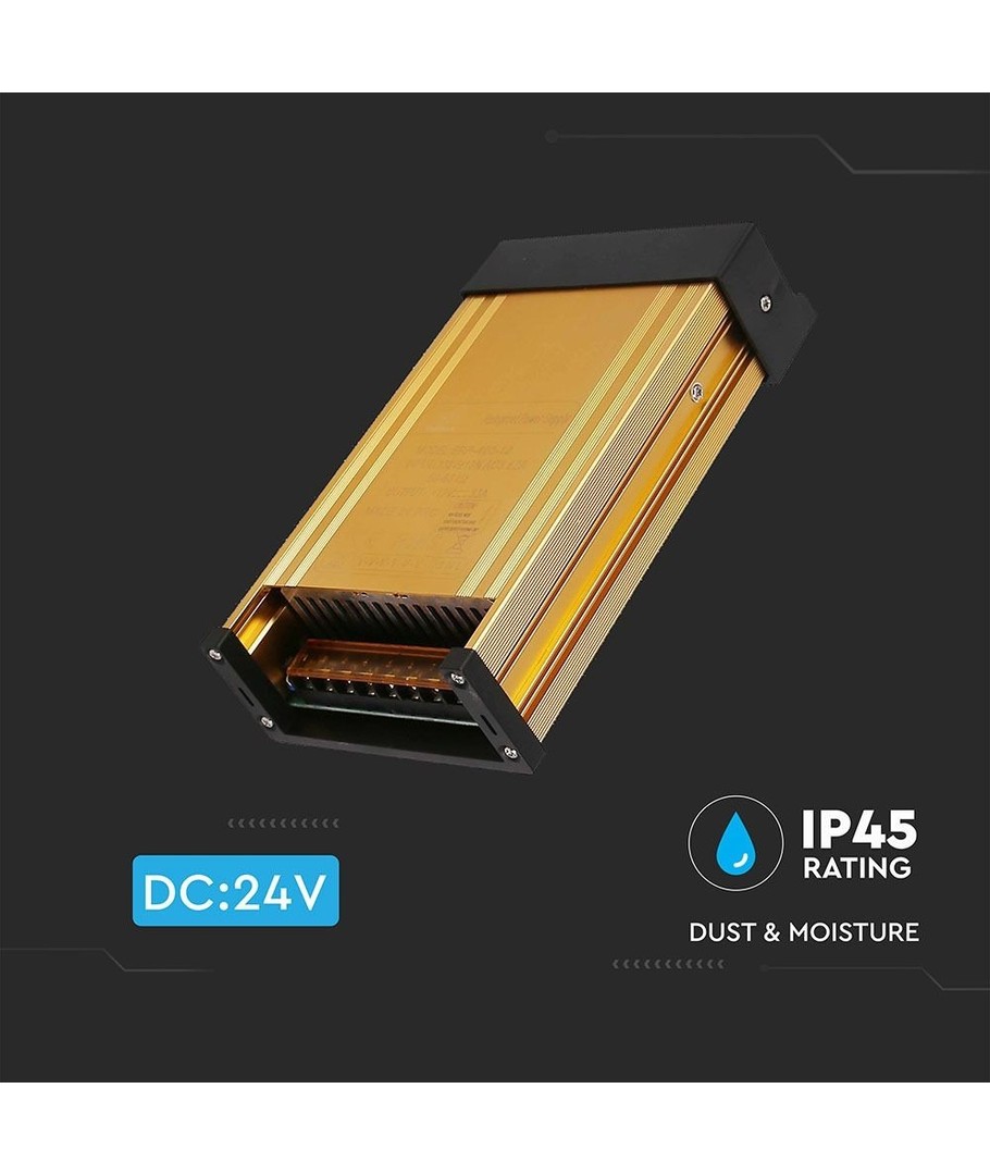 Säkerhet och hållbarhet är centrala i denna strömförsörjning. Med en IP45-klassificering, är enheten robust nog att tåla både fuktig luft och vattenstänk från framsida och sidor. Detta gör den lämplig för både inomhus- och utomhusmiljöer där väderresistens är ett måste.
