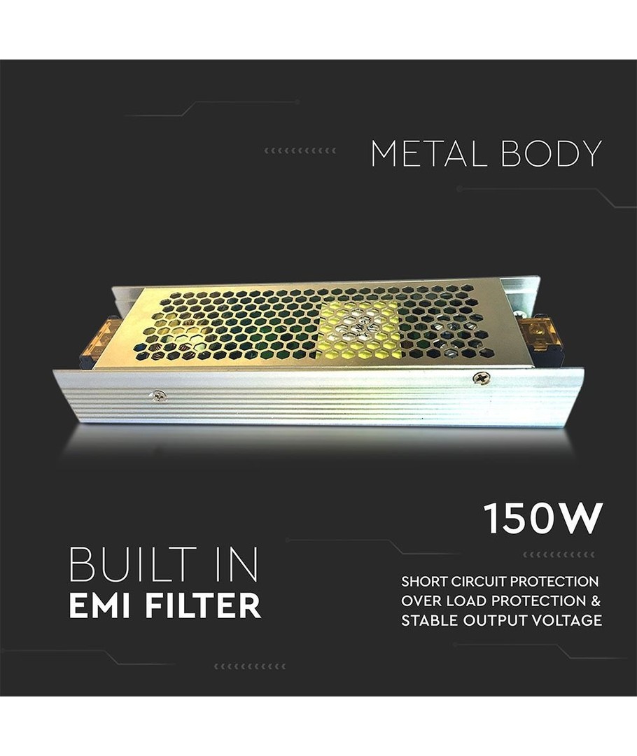 Välj V-Tac 150W strömförsörjning för en robust och effektiv lösning som stödjer dina inomhus-LED-belysningsbehov, och upplev en problemfri drift utan avbrott.