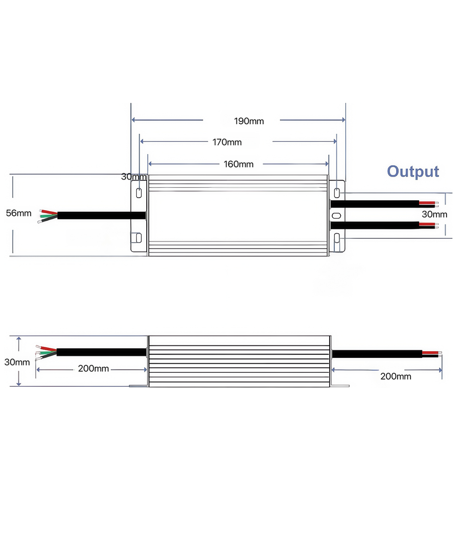 Denna strömförsörjning är designad för enkel installation och smidig användning. Med dimensionerna 56 x 30 x 160 mm är den kompakt och lätt att integrera i olika belysningsapplikationer. Dessutom erbjuder Triac-dimning en smidig ljusjustering efter dina behov.
