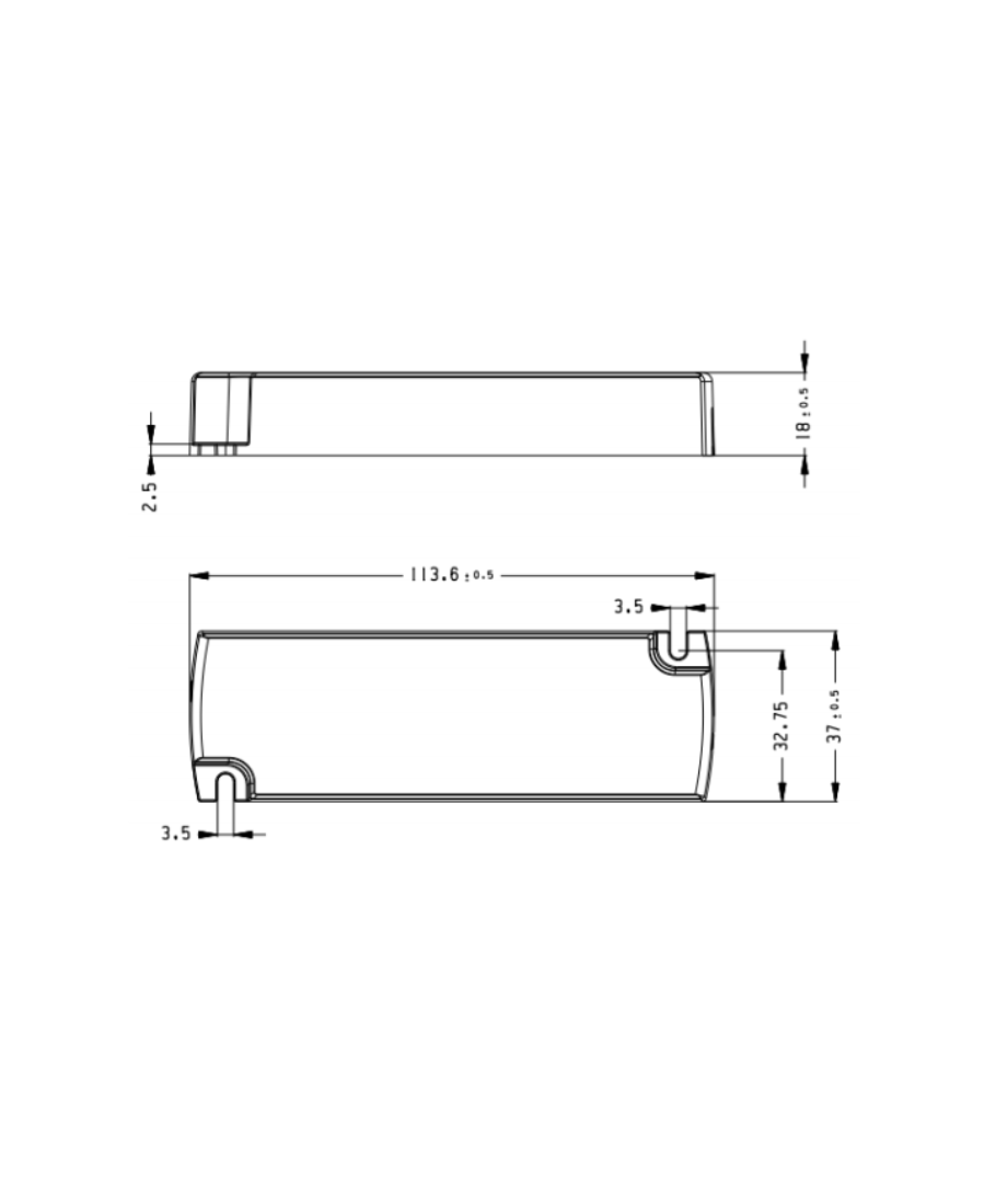 Med dimensioner på endast 37 x 18 x 114 mm är denna strömförsörjning utformad för att passa in i trånga utrymmen, vilket ger dig flexibilitet och mångsidighet i installationen.