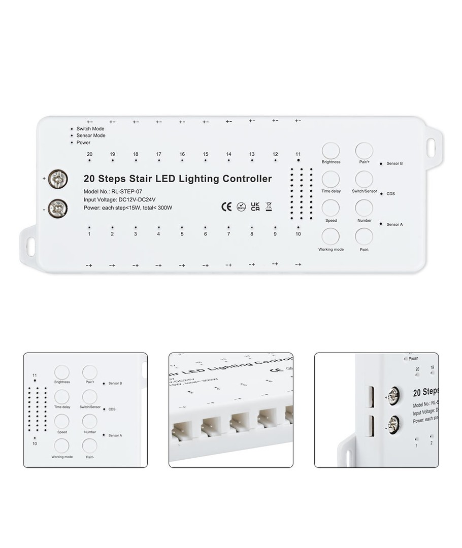 Komplett med sensorer för båda ändarna av trappan och allt annat du behöver för lösningen.