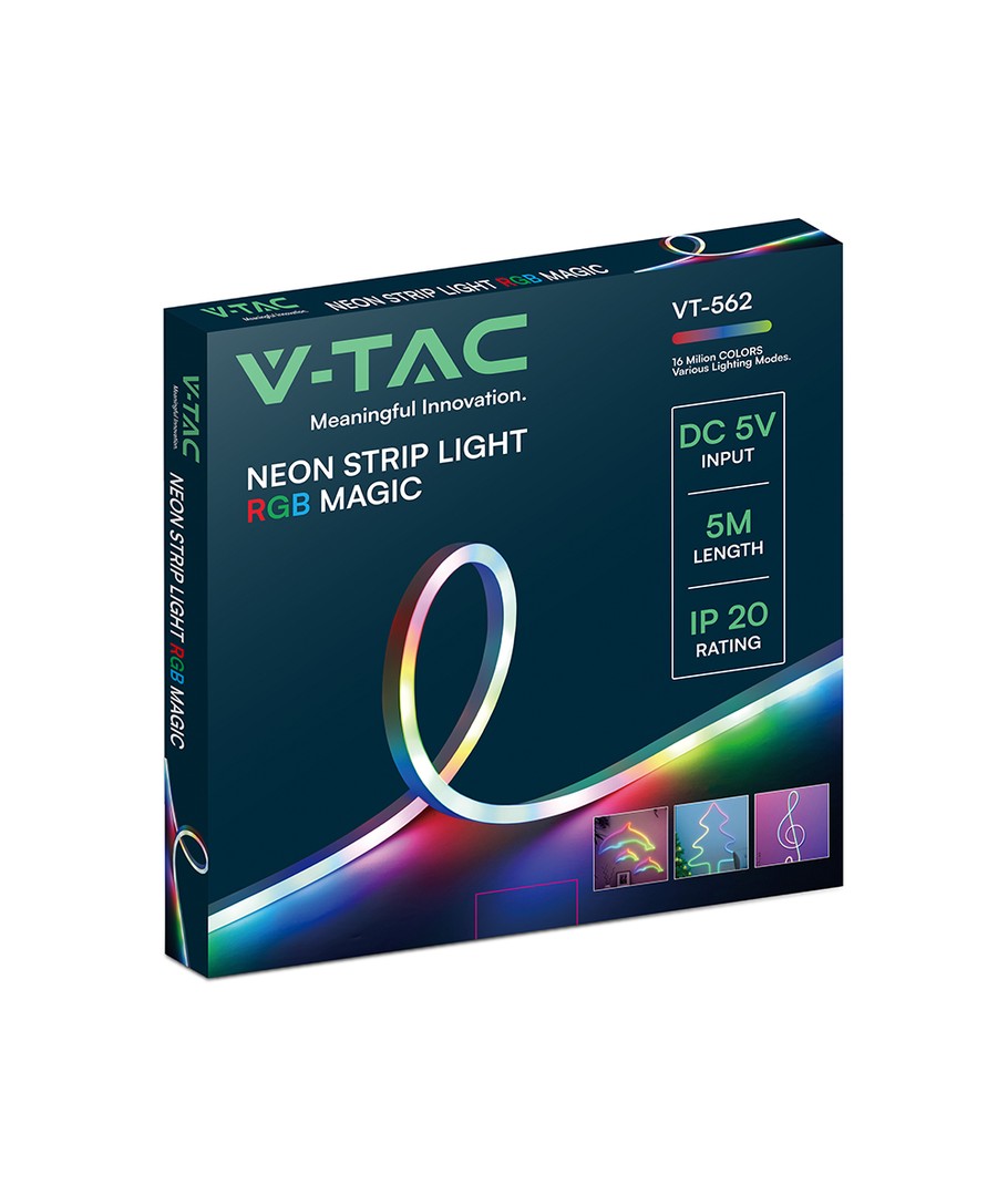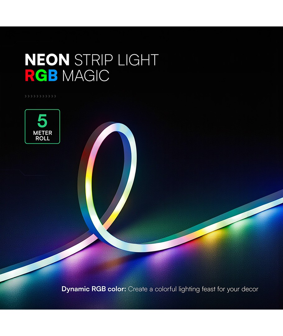 Upplev en färgstark belysningsupplevelse med vårt 5m RGBIC Neon Flex LED-set, som erbjuder flexibel och dynamisk belysning för alla rum via USB-anslutning.