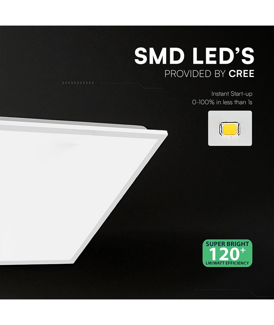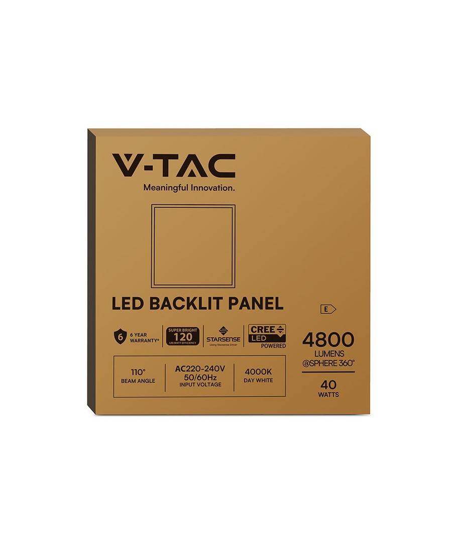 V-Tacs LED-panel erbjuder en hög ljusstyrka på 4800 lm och en effekt på 40W. Den är designad för att kopplas direkt till 230V, vilket gör den enkel att installera i såväl kontors- som hemmiljöer.