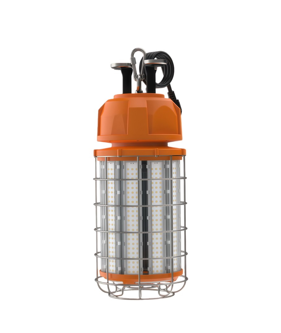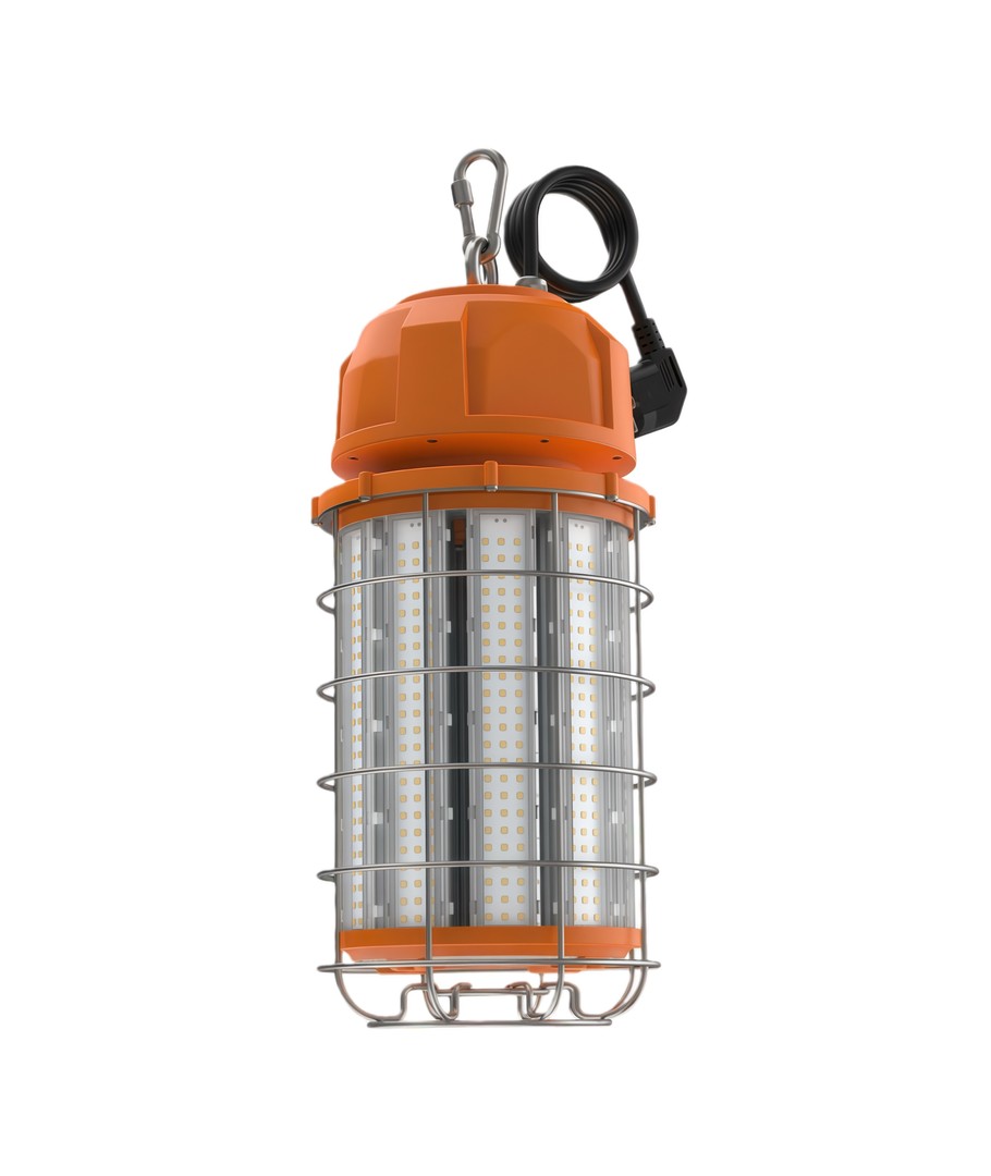 Den robusta konstruktionen med skyddande metallgaller gör lampan idealisk för byggarbetsplatser, verkstäder och andra krävande miljöer.