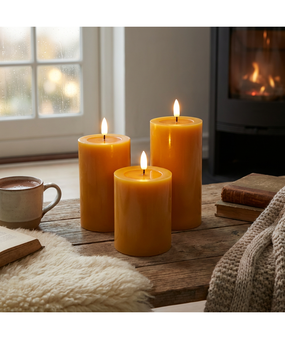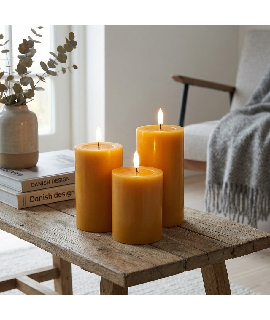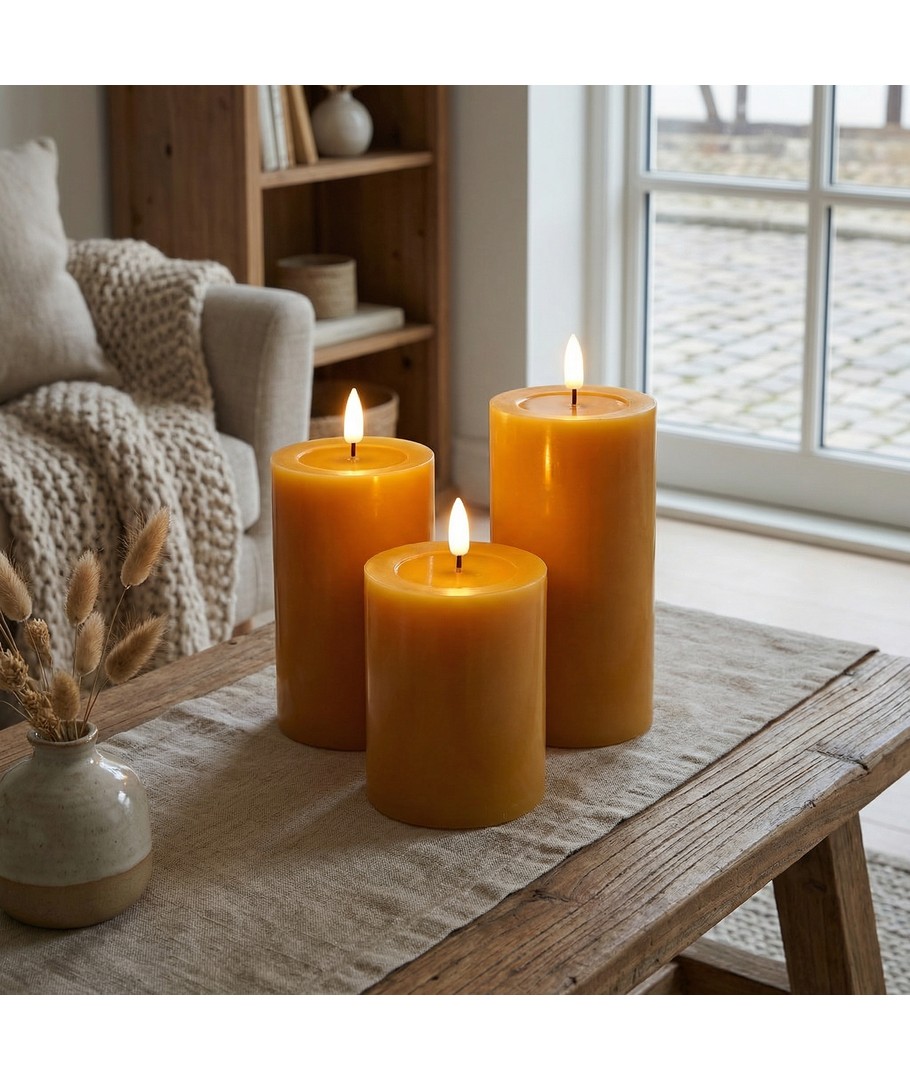 Upplev en magisk atmosfär i ditt hem med vårt set med LED-blockljus, som kombinerar skönheten hos äkta vax med modern teknik för att skapa en naturtrogen flameffekt.
