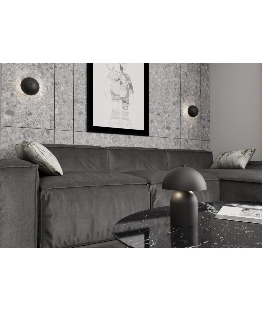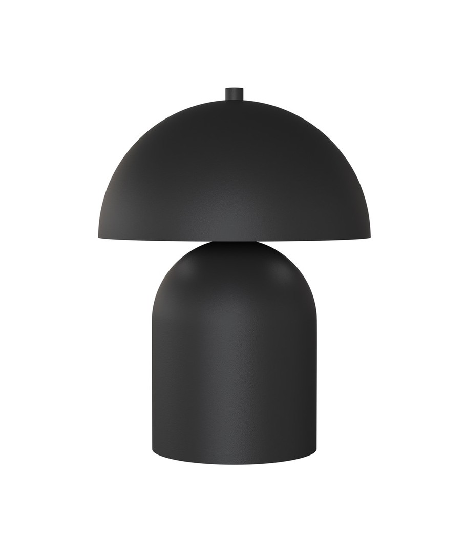 MUSH bordslampan är en stilren belysningslösning som tar inspiration från formen av en svamp. Den kombinerar modern design med minimalistisk estetik. Lampans runda form och mattsvarta finish tillför elegans och skapar en mysig atmosfär i vilket rum som helst. Den är en idealisk, diskret ljuskälla för sovrummet, vardagsrummet eller kontoret, där den smälter sömlöst in i olika inredningsstilar.