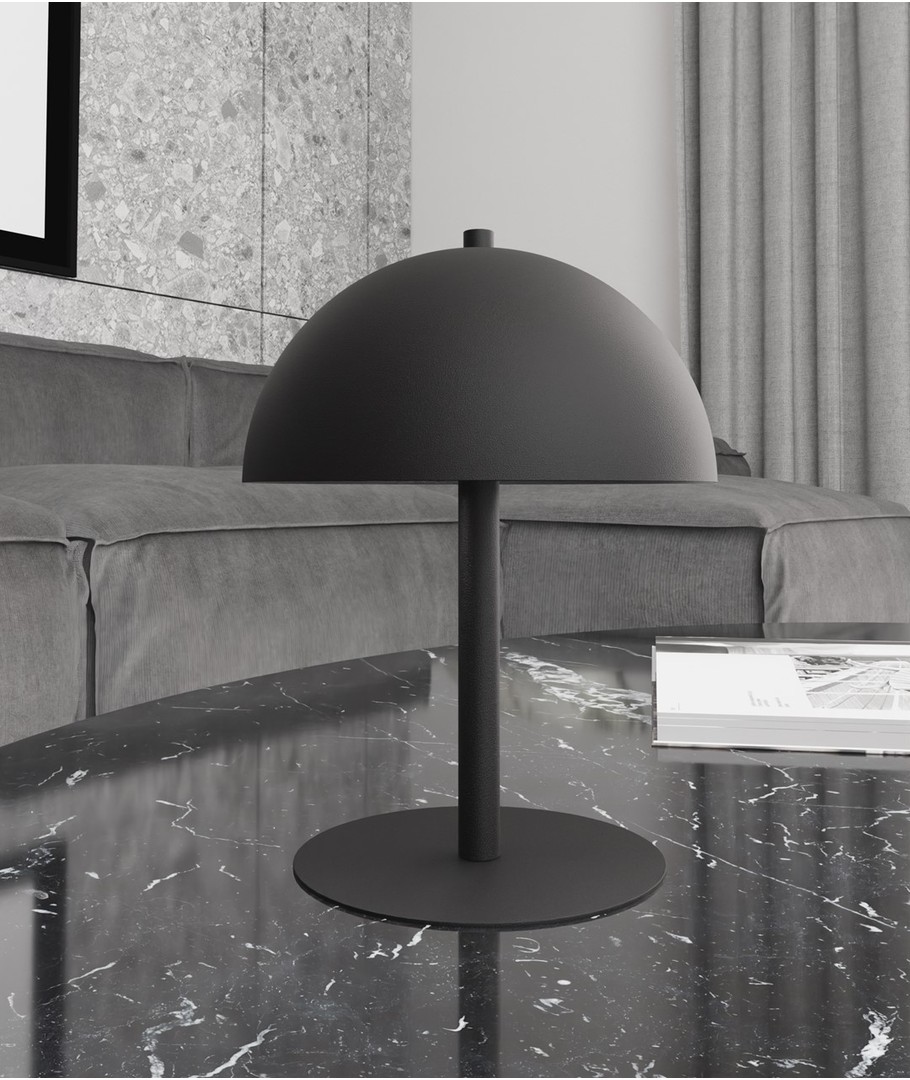 Mogu LN2 Svart bordlampa kombinerar elegans med modern enkelhet. Den halvcirkelformade lampskärmen i matt svart ger ett harmoniskt uttryck som passar perfekt till minimalistiska och moderna inredningar. Med en solid bas och smal stång uppnår lampan både stabilitet och en lätt, raffinerad känsla. Den är det idealiska valet för nattduksbord, skrivbord eller byrå och erbjuder mjukt, diffust ljus som skapar en mysig atmosfär i vilket rum som helst.