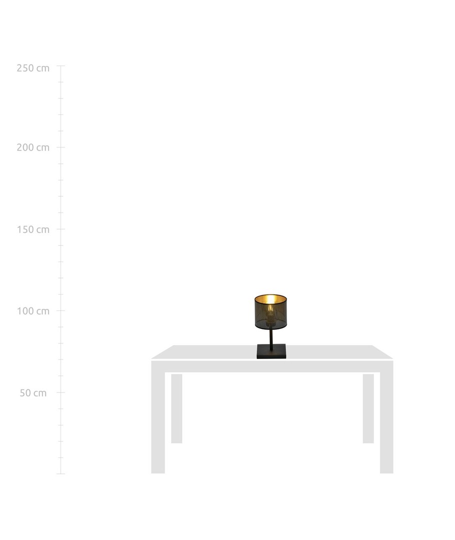 Med en diameter på 15 cm, passar denna bordlampa perfekt på skrivbord, nattduksbord eller sidobord. Den sofistikerade guldfärgen ger en touch av lyx och kompletterar den svarta basen, vilket gör den till ett elegant centrum i vilket rum den än placeras.