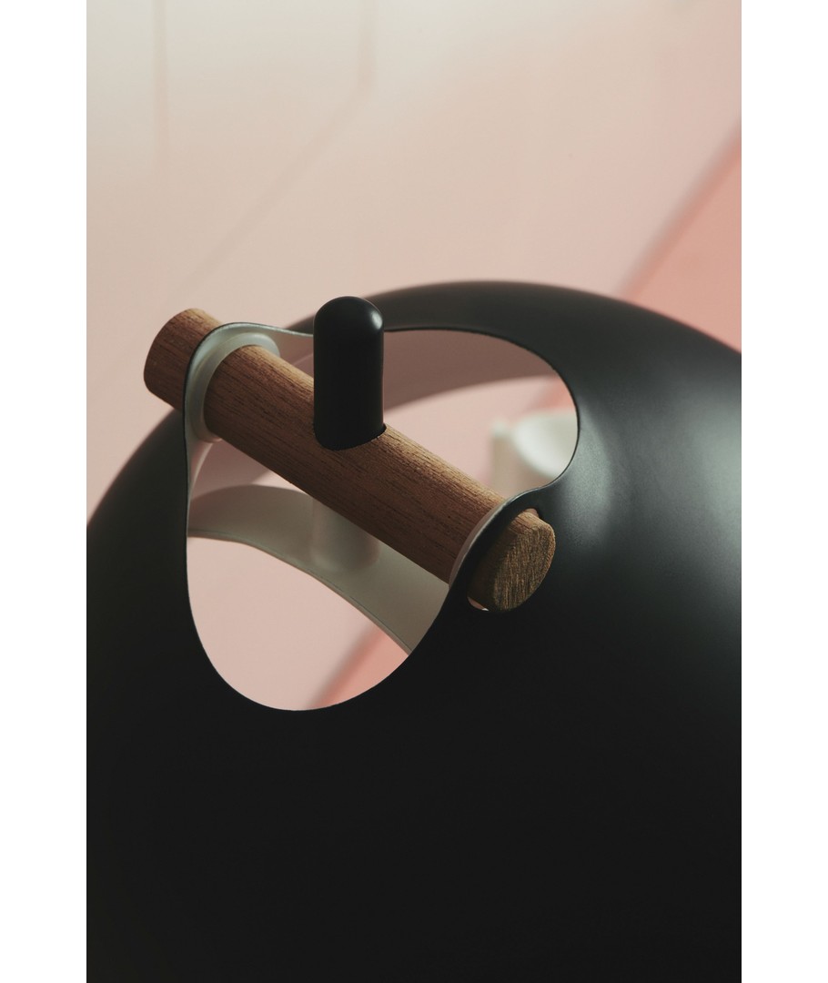 Lampan är tillverkad med en stilfull svart och trä kombination, vilket ger den ett unikt och elegant utseende. Materialvalet gör att lampan enkelt smälter in i olika inredningsstilar.