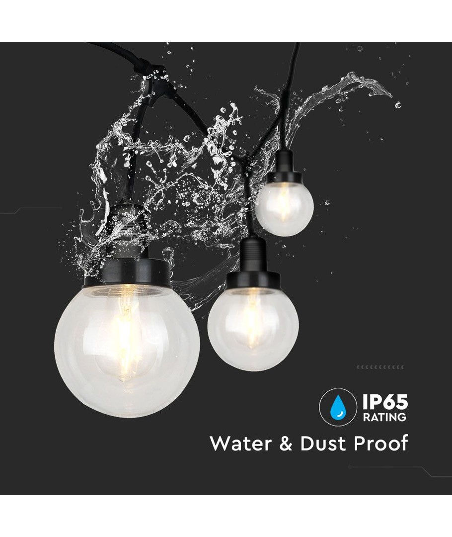 Den 3m E27 ljusslinga med 6 kupoler är ett idealiskt val för dem som önskar både funktionalitet och estetiskt tilltalande belysning för sina utomhusområden.