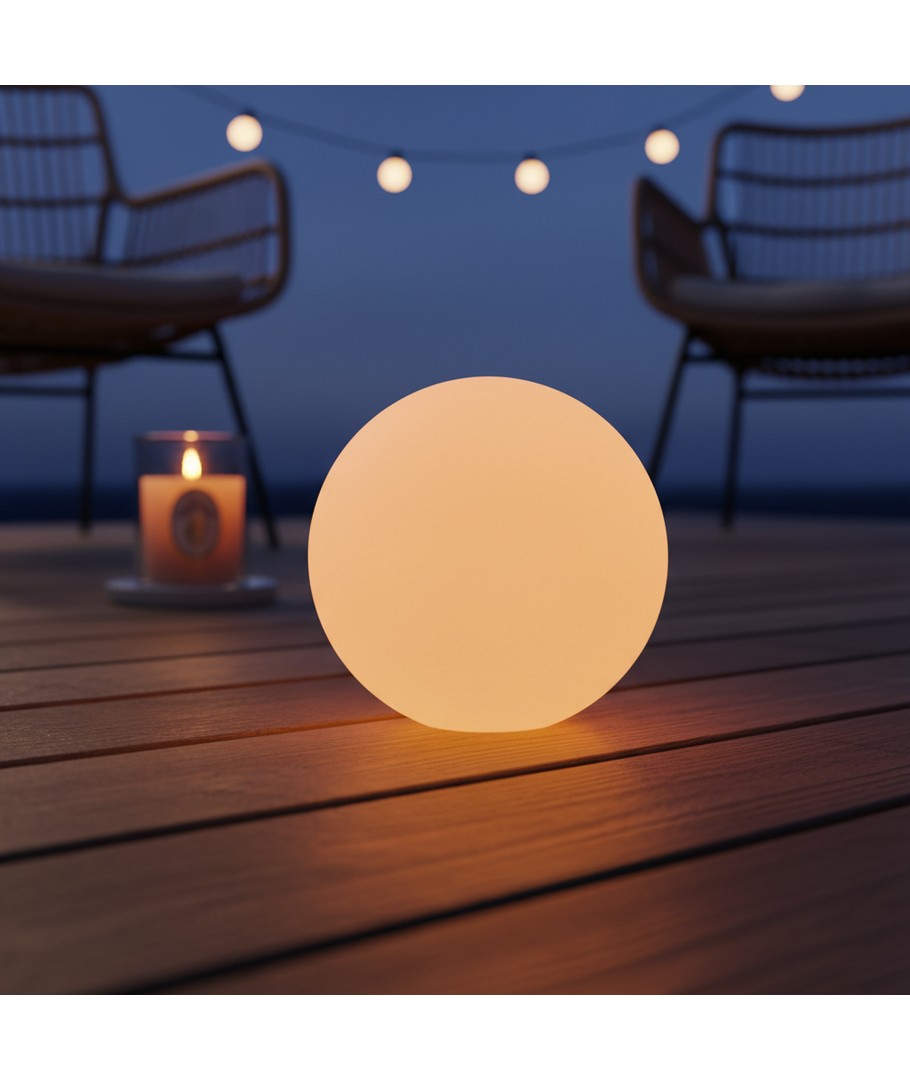Skapa en stämningsfull belysning med våra LED-bollar som lyser i vackra RGB-färger och effekter. Alla bollar är uppladdningsbara, tillverkade i slitstark plast och helt vattentäta, så de kan till och med flyta på vatten. Med den medföljande fjärrkontrollen byter du enkelt mellan färger, effekter och ljusstyrka på en eller flera bollar åt gången.