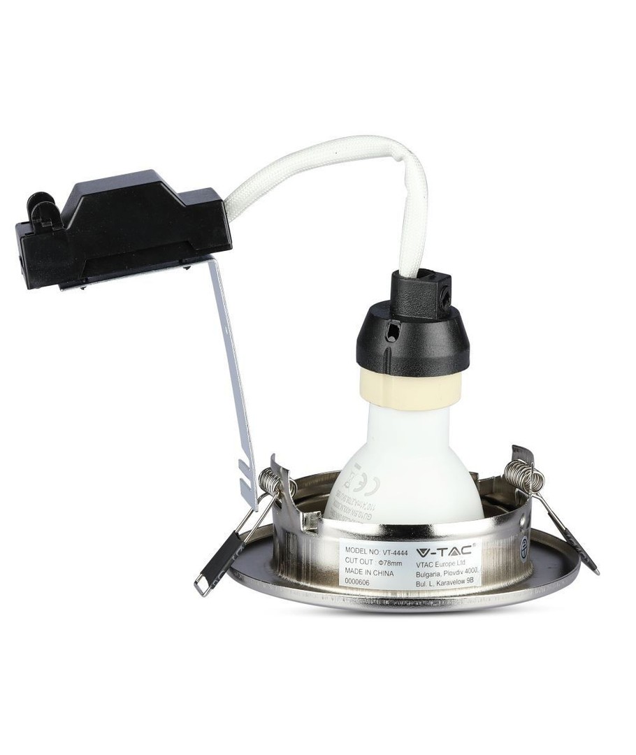 Komplett set med infälld downlight, GU10-uttag / hållare och GU10-ljuskälla.