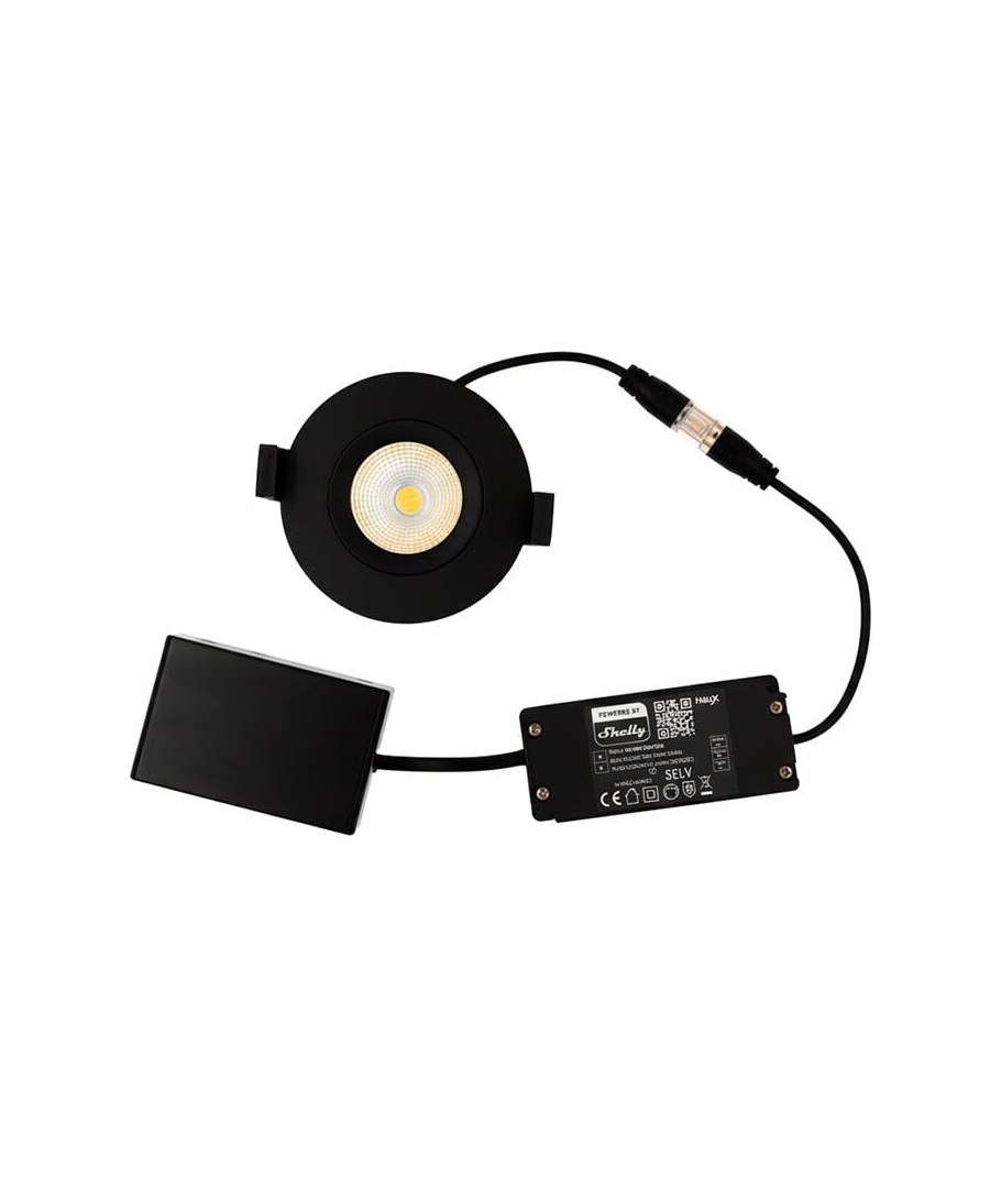 Tack vare dess eleganta svarta design smälter denna inbyggnadsspot stilfullt in i både moderna och klassiska interiörer. Dess kompakta dimensioner (41 x Ø90 mm) och den integrerade ljuskällan gör installationen enkel och diskret. Produkten är vidare IP44-klassad, vilket innebär att den är skyddad mot både fuktig luft och vattenstänk på framsidan – perfekt för användning i badrum eller andra delvis fuktiga miljöer.