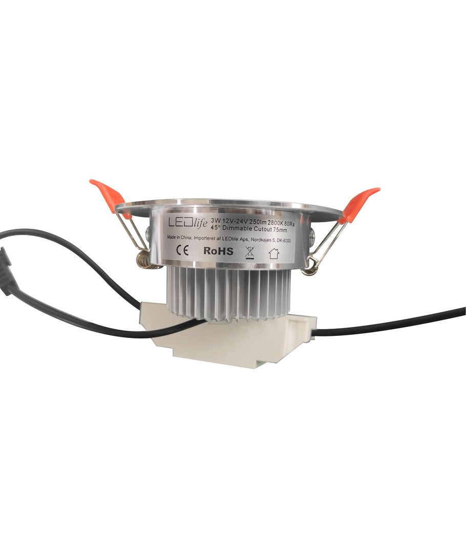 Spotlighten är anpassad för att anslutas till 12V-24V DC, vilket gör den flexibel och enkel att använda i olika installationer. Med en ljusstyrka på 250 lm och en belysningsvinkel på 45 grader, ger den ett fokuserat och kontrollerat ljus, perfekt för att framhäva specifika områden i ditt hem.