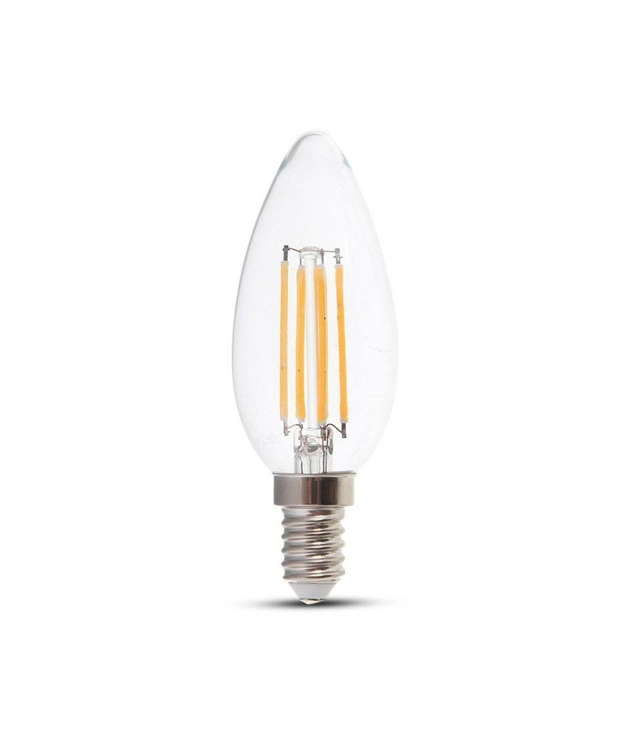 Upptäck en energibesparande och dekorativ belysningslösning med den innovativa 4W LED kronljuset från V-Tac. Denna lampa har en filamentdesign och är utrustad med en E14-sockel, vilket gör den till en idealisk ersättning för traditionella 40W-glödlampor.