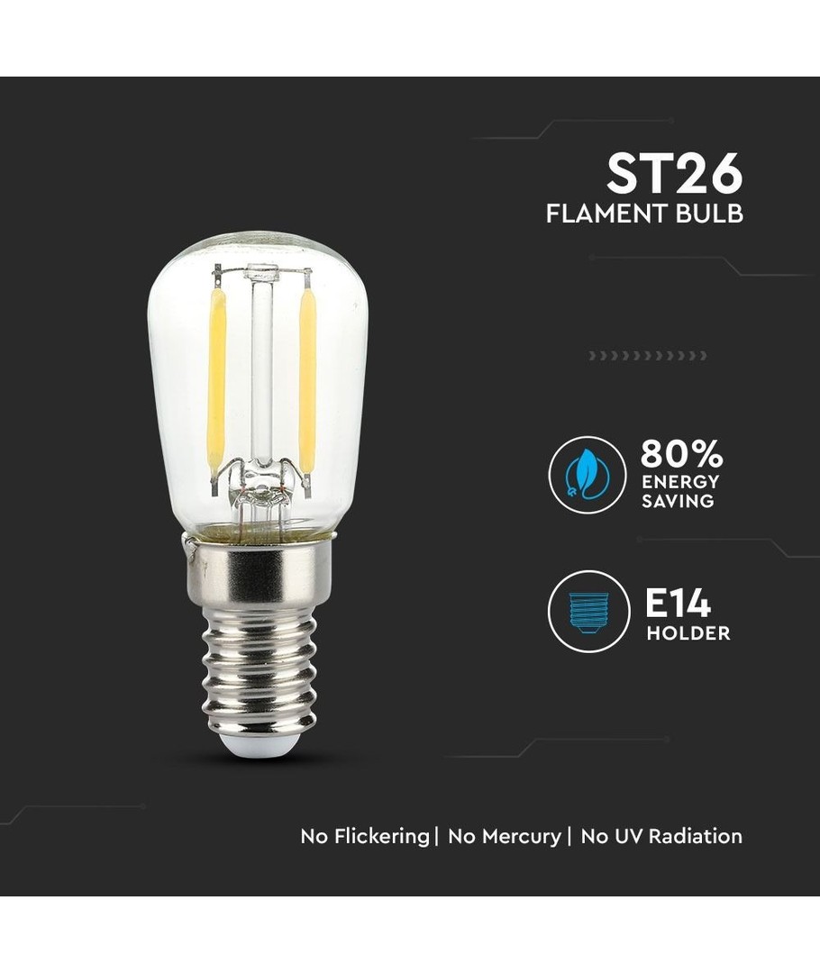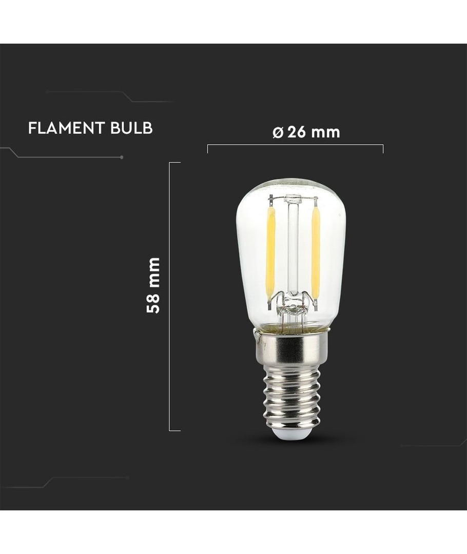 Med dimensionerna 64 x Ø26 mm, är denna filamentlampa i ST26-format kompakt och lättinstallerad. Passformen med E14 liten sockel gör den idealisk för de flesta kylskåpsmodeller, vilket säkerställer att den alltid hittar sin plats utan problem.