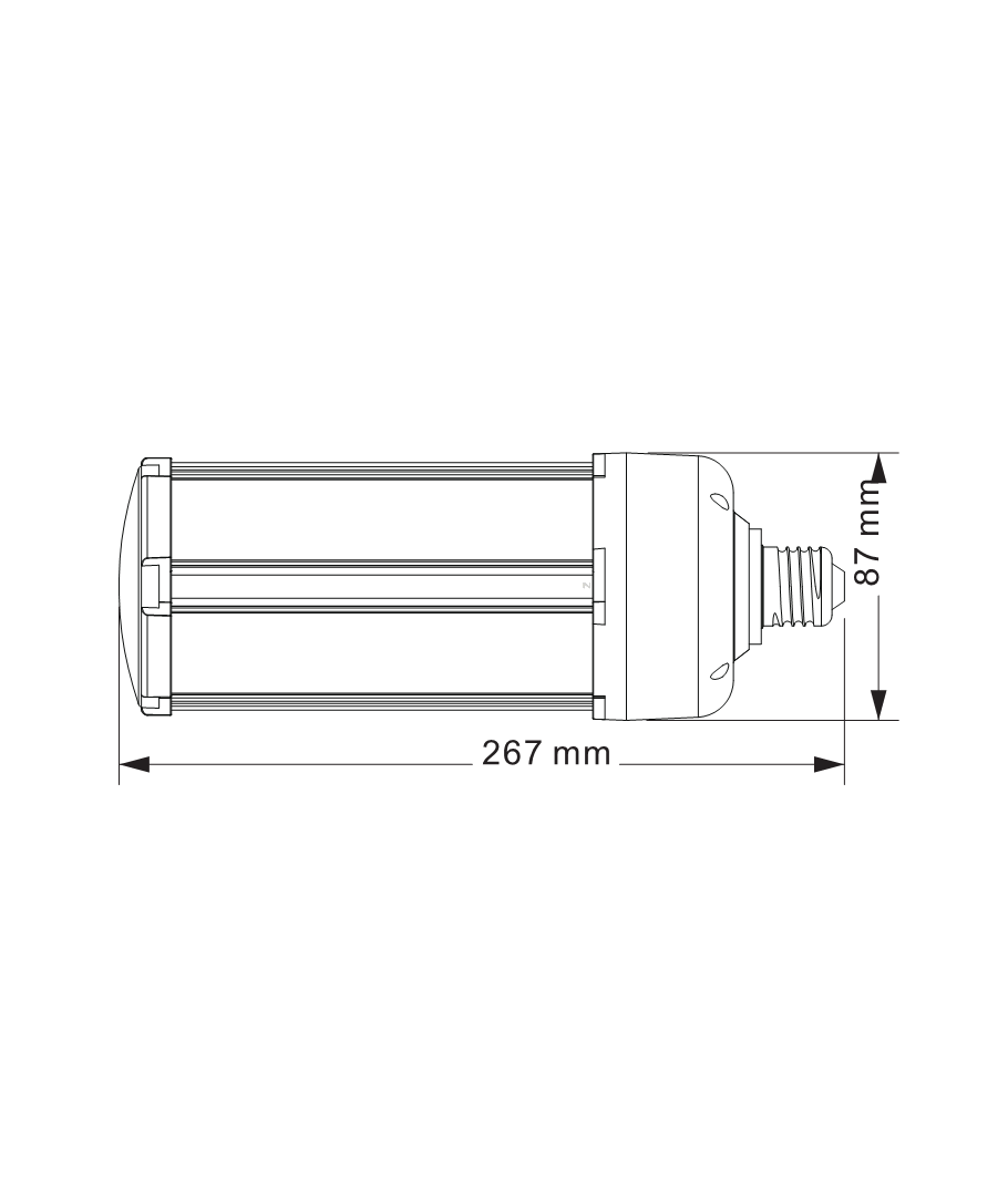 Med dimensioner på 267 x Ø87 mm är lampan designad för att passa in i olika armaturer utan att vara påträngande, samtidigt som den ger ett maximerat ljusflöde.