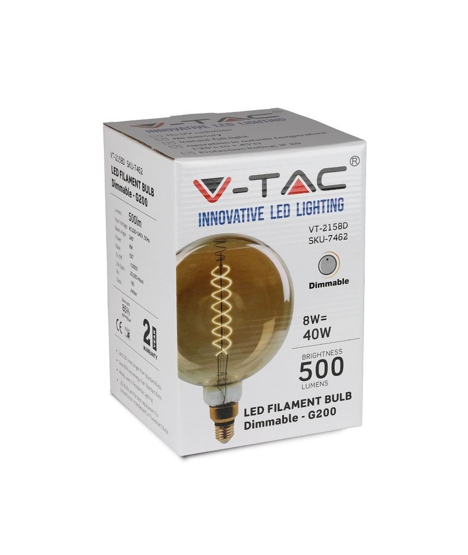 Förbättra belysningen i ditt hem med denna högkvalitativa LED-globlampa från V-Tac. Designad för att ge extra varm vit belysning med temperaturinställningar på 2000K, denna lampa är skapad för att efterlikna det behagliga ljuset från en gammaldags glödlampa.