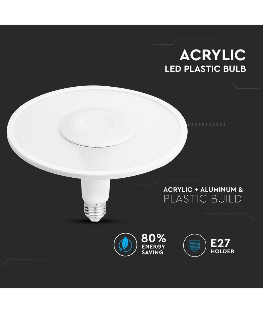 Effektivitet och komfort möts med UFO LED lampan, och med sin 5 års fabriksgaranti kan du känna dig trygg med ditt val. Skapa en varm och inbjudande atmosfär med dess 3000K varmvita ljus, perfekt för att ge en avkopplande stämning i alla rum.