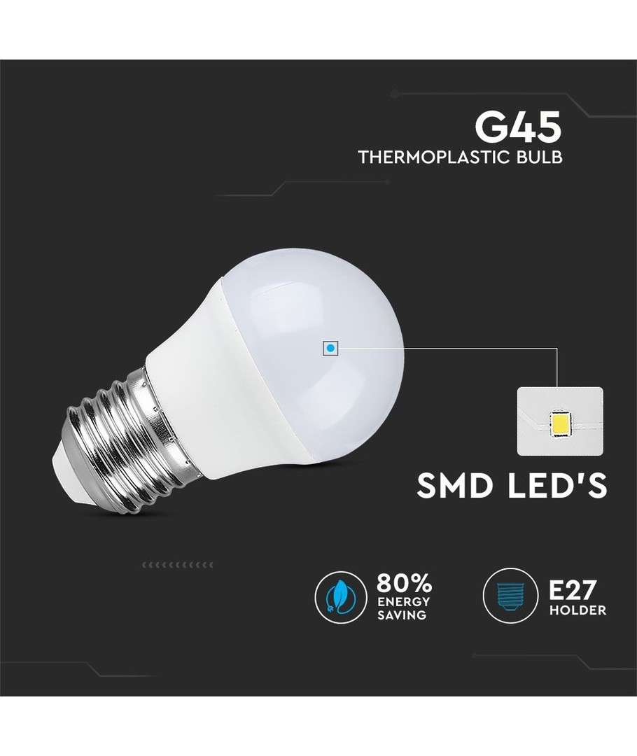 Med dimensionerna 82 x Ø45 mm, är denna G45-formade LED-lampa både kompakt och stilren, vilket gör den lätt att integrera i de flesta armaturer.
