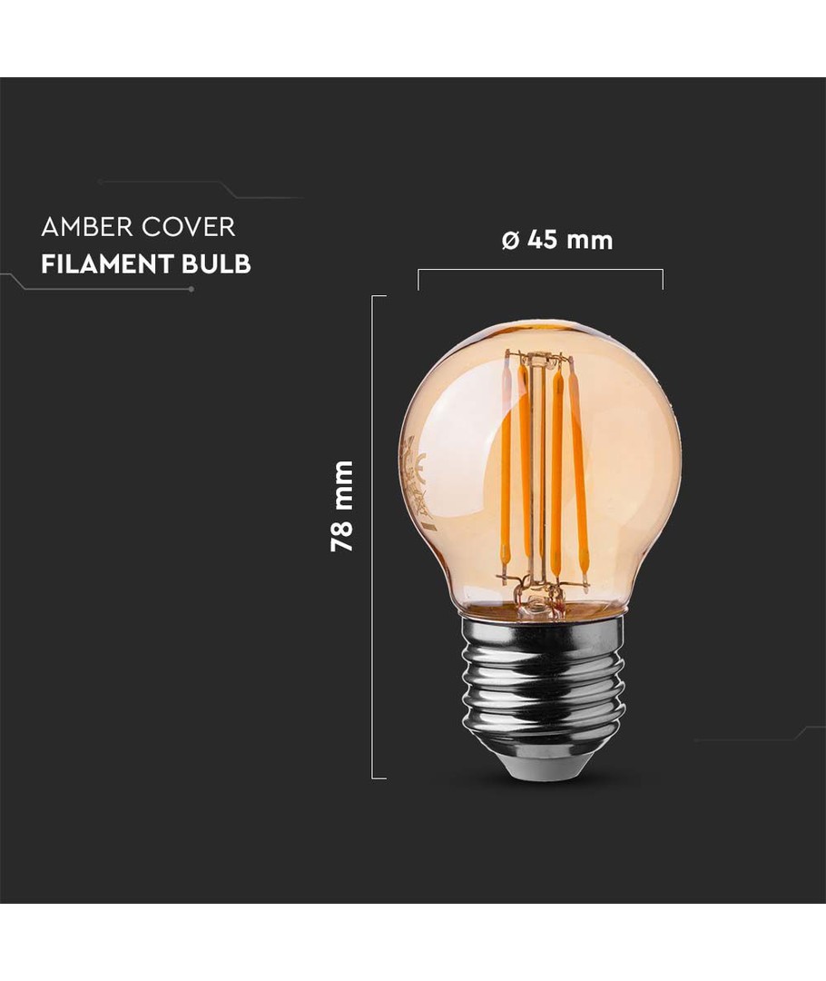 V-Tac LED 4W Bärnstensfärgad kronlampa E27 - G45 är en stilfull och energieffektiv ljuskälla som erbjuder en varm och mysig belysning för varje rum.