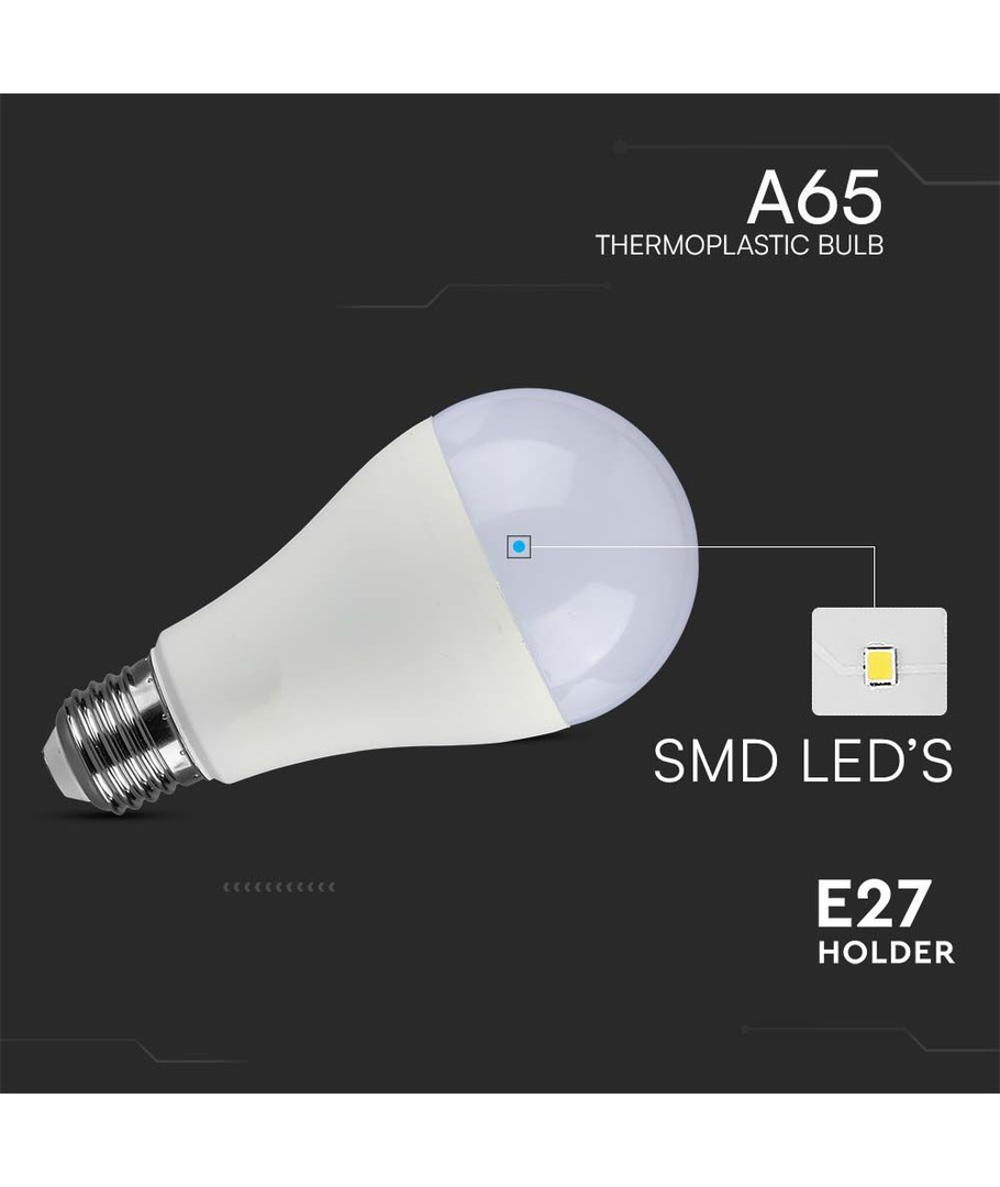< H3 >Översikt över LED-lampa 17W E27< /H3 >< P >Denna LED-lampa är en < B >effektiv och hållbar< /B > belysningslösning som tack vare sin < B >17W effekt< /B > är både energisnål och mångsidig. Med en klassisk < B >E27 stor sockel< /B > är den kompatibel med de flesta standardarmaturer.< /P >< H3 >Ljusstyrka och Fördelning< /H3 >< P >Lampan erbjuder en imponerande < B >ljusstyrka på 1710 lumen< /B >, vilket ger tillräckligt med ljus för de flesta utrymmen. Med en bred spridningsvinkel på < B >200 grader< /B > säkerställer den en < B >jämn ljusfördelning< /B > över hela ytan, vilket minimerar skuggor och ger ett behagligt ljus.< /P >< H3 >Ljuskvalitet< /H3 >< P >Tack vare ett högt RA-värde på < B >80-85< /B > säkerställs < B >hög ljuskvalitet< /B >, vilket innebär att färger framstår på ett < B >naturligt och vackert< /B > sätt. Detta gör lampan idealisk både för hem och arbetsplatser där korrekt färgåtergivning är viktig.< /P >< H3 >Färgtemperatur< /H3 >< P >Lampan erbjuder ett < B >neutralvitt ljus (4000K)< /B >. Denna färgtemperatur skapar en behaglig och effektiv arbetsmiljö utan störande blåa eller gula toner, vilket gör att upplysta produkter och omgivningar upplevs < B >helt naturligt< /B >.< /P >< H3 >Specifikationer< /H3 >< UL > < LI >Dimensioner: 134 x 65 mm< /LI > < LI >IP20 - Ej vattentät, avsedd för inomhusbruk< /LI > < LI >Integrerad ljuskälla för enkel installation< /LI > < /UL >< P >Denna LED-lampa kombinerar < B >teknisk spetskompetens< /B > med < B >praktisk användbarhet< /B >, vilket gör den till ett utmärkt val för allmänbelysning i både hem och professionella miljöer.< /P >