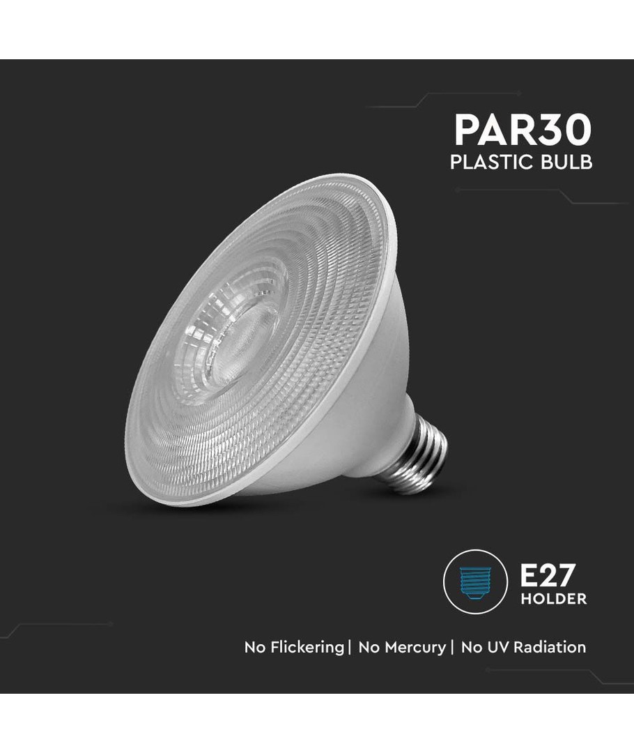 V-Tac 11W PAR30 LED-lampa kombinerar avancerade chips från Samsung med energieffektiv belysning som passar i vilken E27-sockel som helst.