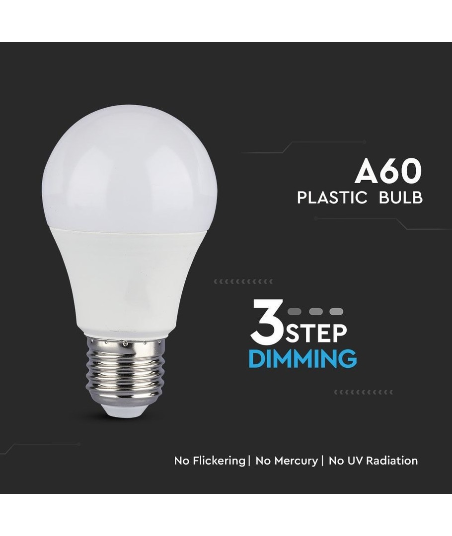 Vacker 3-stegs dimbar E27 LED-lampa som ser ut som en traditionell glödlampa.