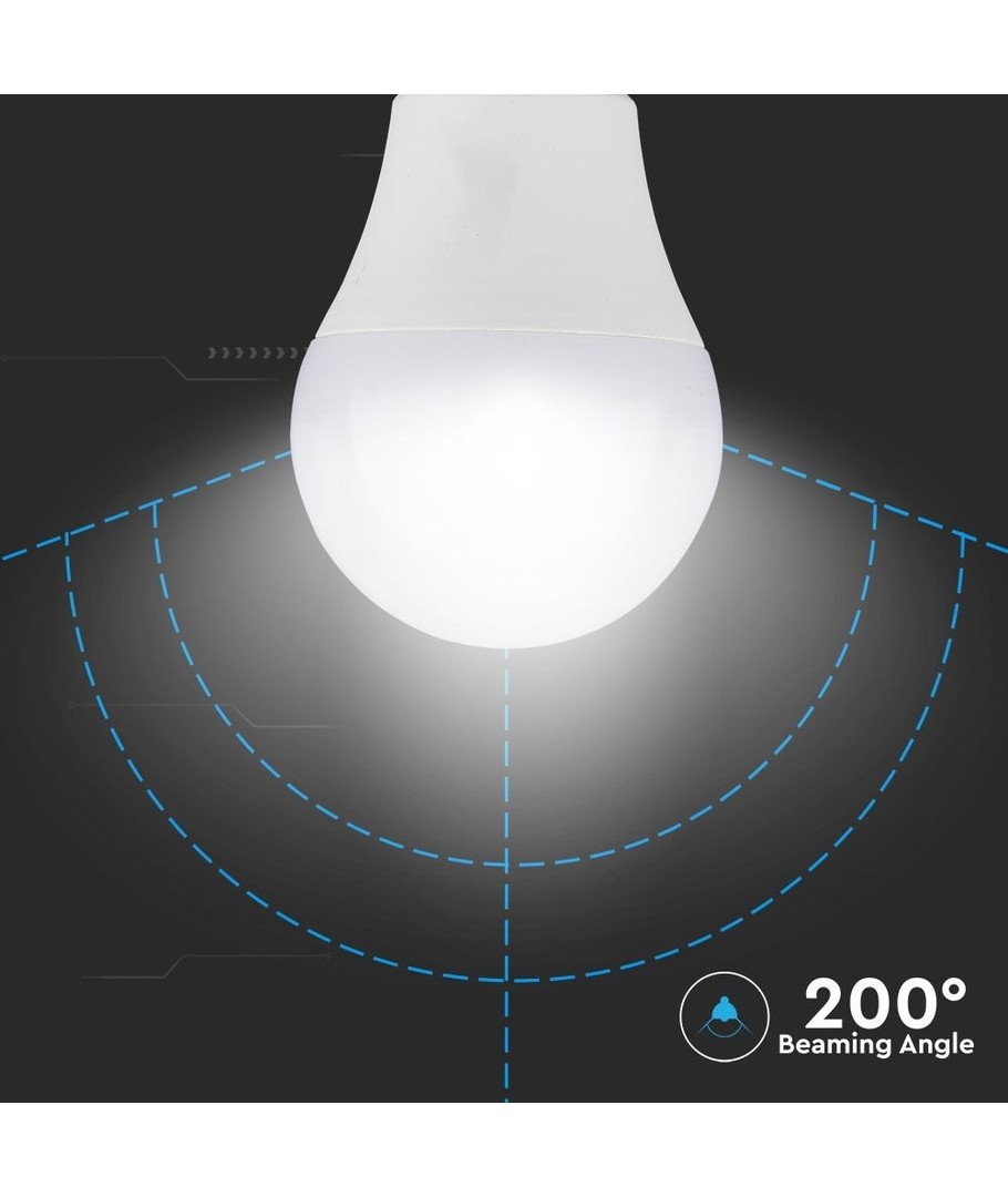 Denna LED-lampa erbjuder en ljusstyrka på 806 lumen och har en bred spridningsvinkel på 200 grader, vilket säkerställer att ljuset fördelas jämnt i ditt utrymme. Ljuset har ett RA-värde på 80-85, vilket ger naturligt vackert ljus som återger färger på ett genuint sätt och uppfyller de flesta belysningsbehov.