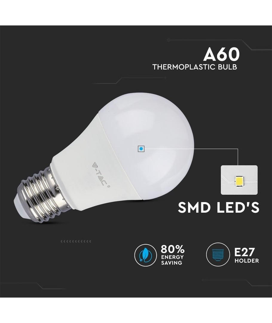 Upplev fördelarna med modern belysning med denna 9W LED-lampa, designad för att ersätta en traditionell 60W glödlampa. Den är utrustad med en E27-sockel och är enkel att installera i de flesta standardarmaturer.