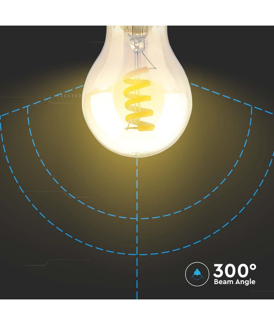 Denna LED-lampa erbjuder en perfekt kombination av modern teknik och klassisk design. Med sin spiralformade glödtråd och amberfärgade glas skapar den en atmosfär som påminner om de traditionella glödlamporna.