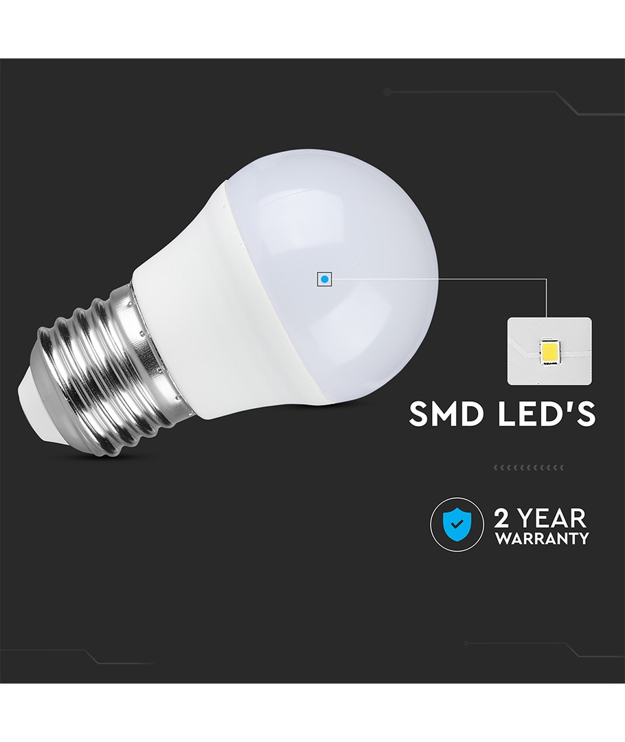 Denna 6,5W E27 LED-lampa - G45 kombinerar effektivitet med hög ljusstyrka, vilket gör den till det perfekta valet för både hemmet och arbetsplatsen.