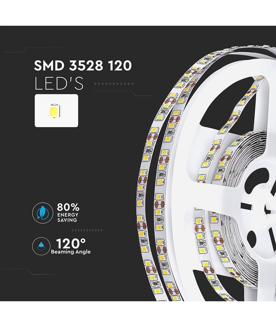Transformera ditt hem med en flexibel och kraftfull LED-strip designad för att ge jämn och stark belysning. Med en kapacitet på 8W per meter och 120 LED-dioder per meter, erbjuder denna strip en fantastisk ljusstyrka på 800 lm/meter, vilket säkerställer en bred ljusspridning på 120 grader.