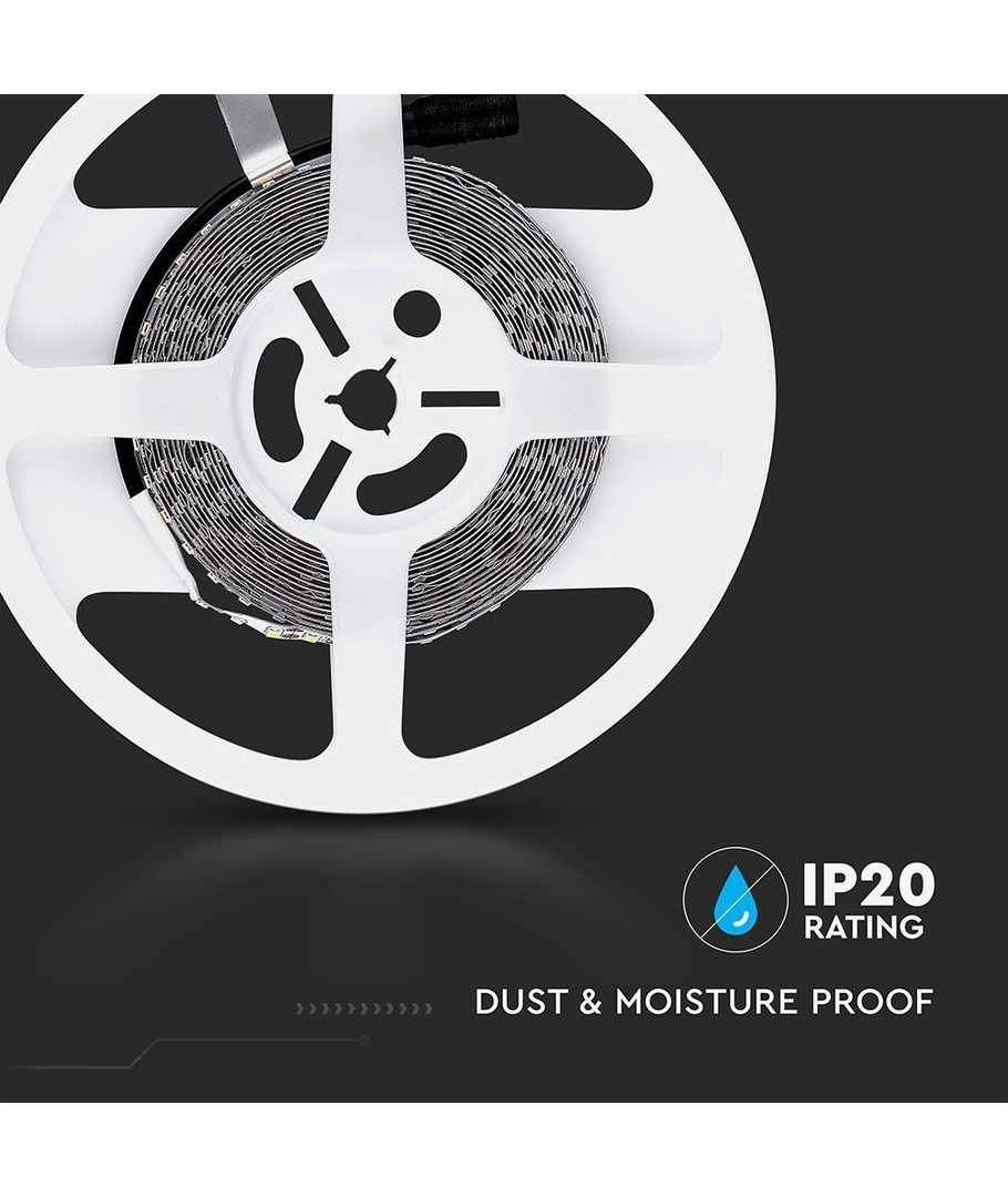Med en bredd på endast 8 mm är denna LED-strip lätt att installera även i trånga utrymmen. Observera att produkten har en IP20-klassning och är ej vattentät, vilket gör den lämplig för inomhusbruk.