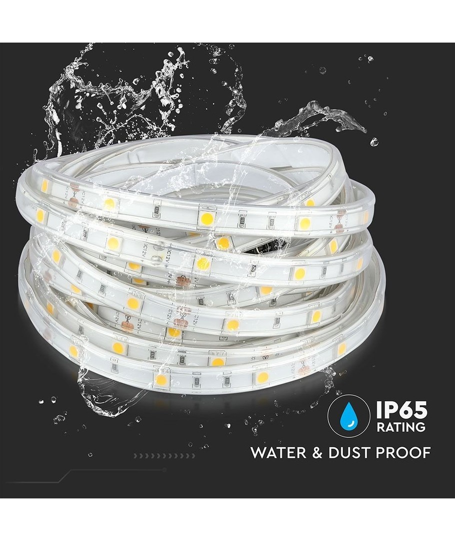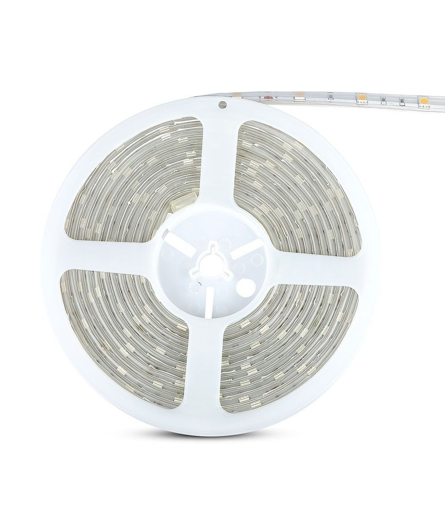 Denna stänksäkra LED strip erbjuder en effekt på 4,8W per meter och levereras som en 5 meter lång rulle, vilket gör den perfekt för både hem och arbetsplats. Med 30 LED per meter och en hög ljuskvalitet med ett RA-värde på 80-85, säkerställer den naturliga och vackra färger som uppfyller de flesta belysningsbehov.
