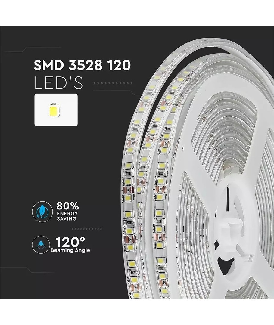 LED-stripen erbjuder en bred ljusspridning på 120 grader, vilket ger en jämn fördelning av ljuset. Med ett RA-värde mellan 80 och 85 garanteras en hög ljuskvalitet, vilket gör att färger framträder naturligt och vackert, oavsett var du placerar stripen.