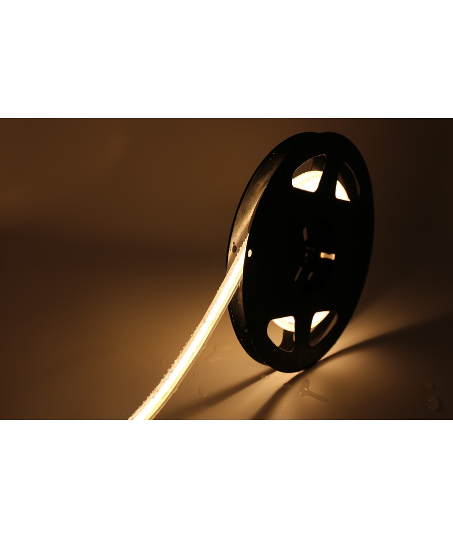 Den vattentäta COB LED-stripen erbjuder en perfekt kombination av prestanda och flexibilitet, vilket gör den lämplig för en mängd olika applikationer. Med en konsumtion på 12W/meter och en strömförsörjning på 24V DC är denna LED-strip både energieffektiv och kraftfull.