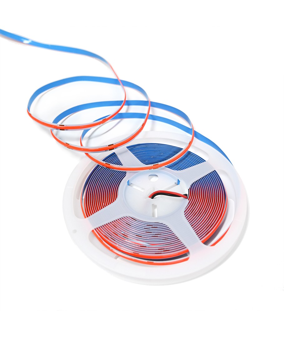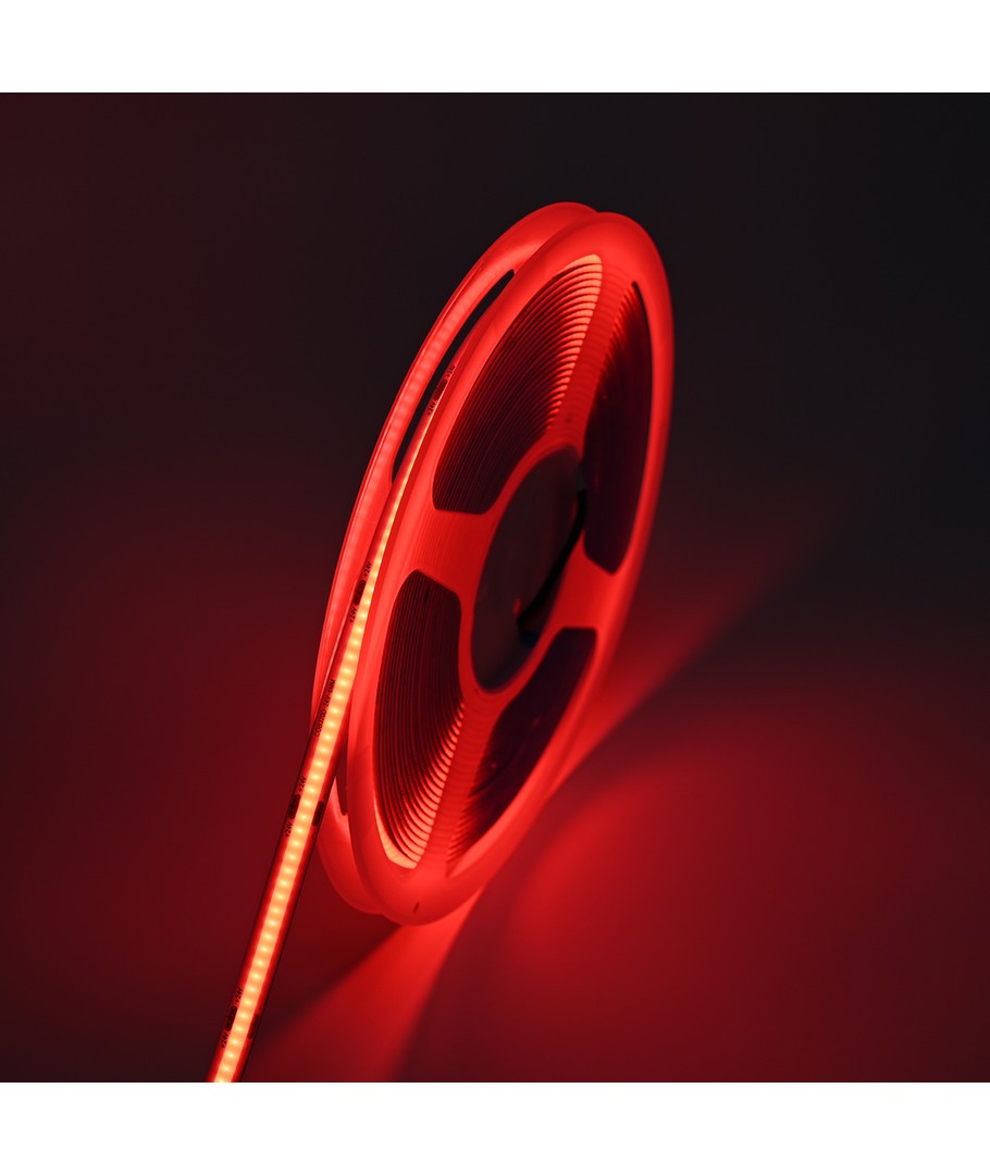 Enfärgad röd COB LED strip med 320 LED-lampor per meter.