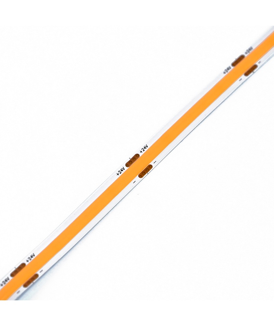 Enfärgad orange COB LED strip med 320 LED-lampor per meter.