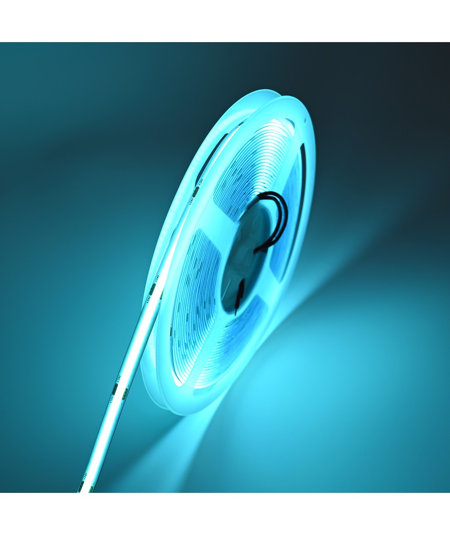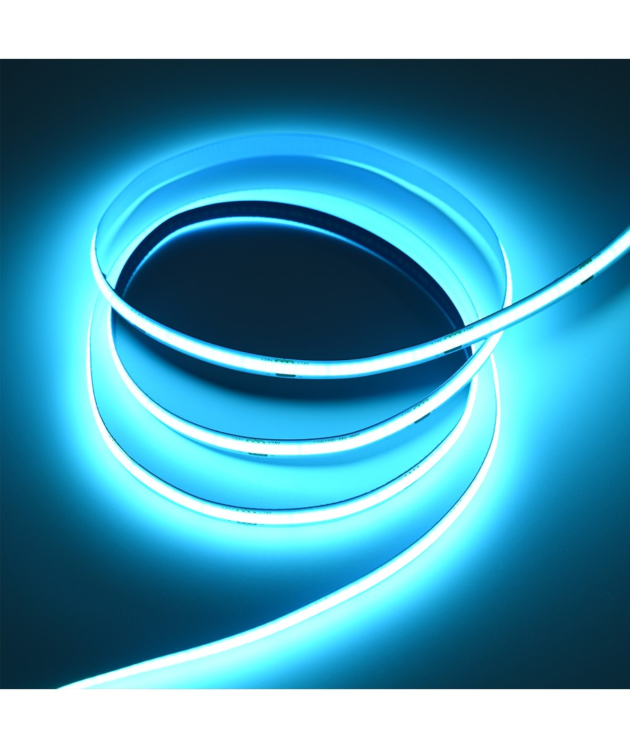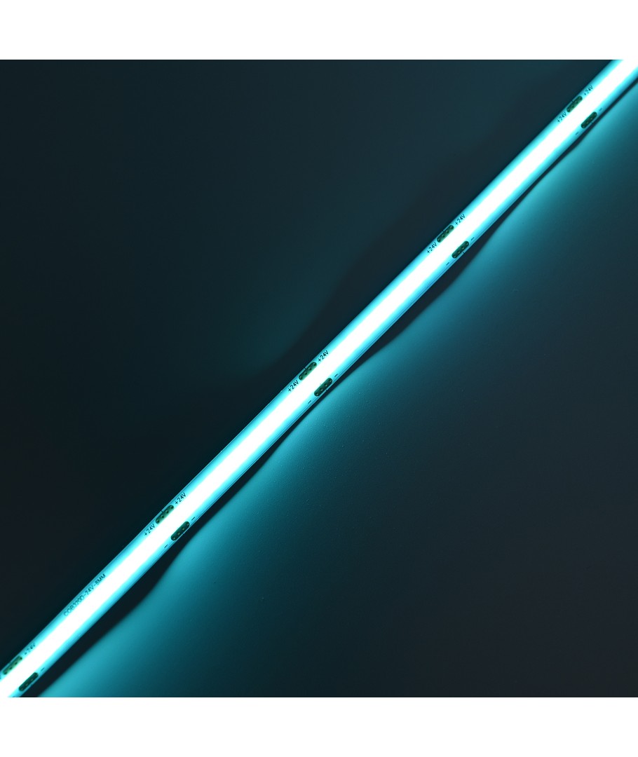 Enfärgad turkos COB LED strip med 320 LED per meter.