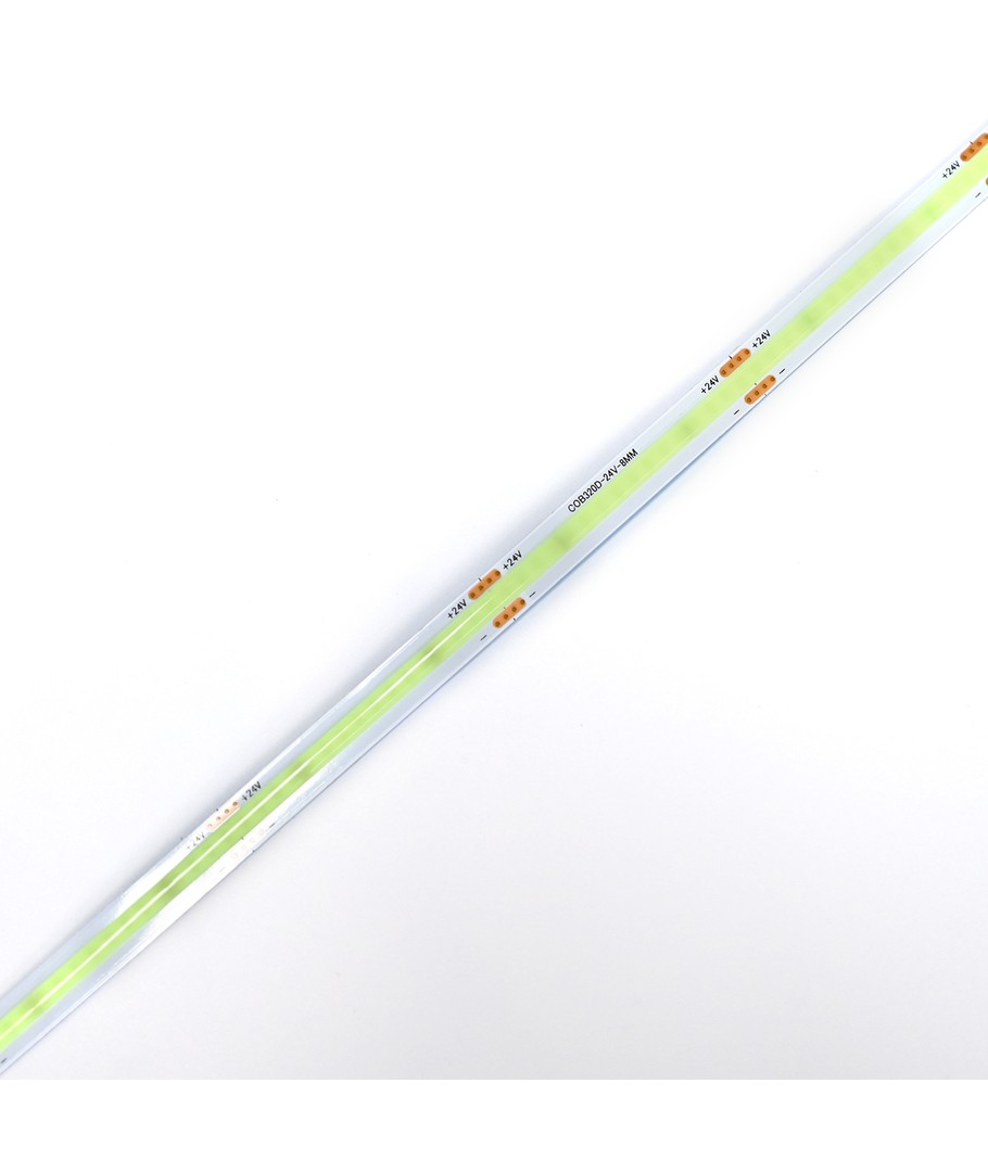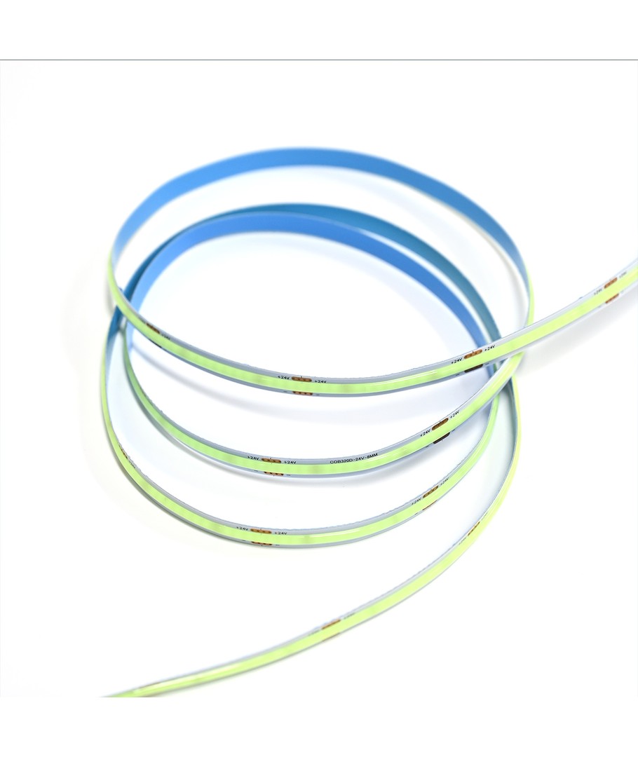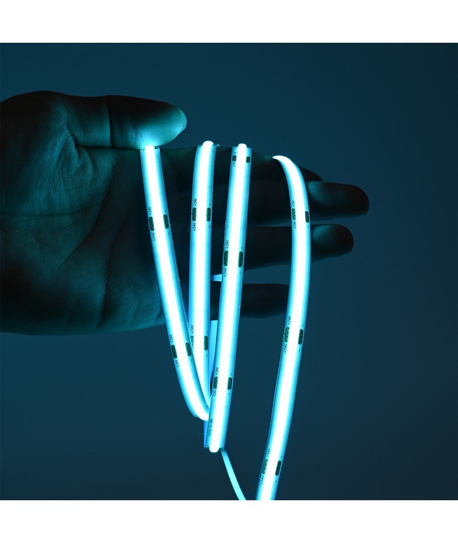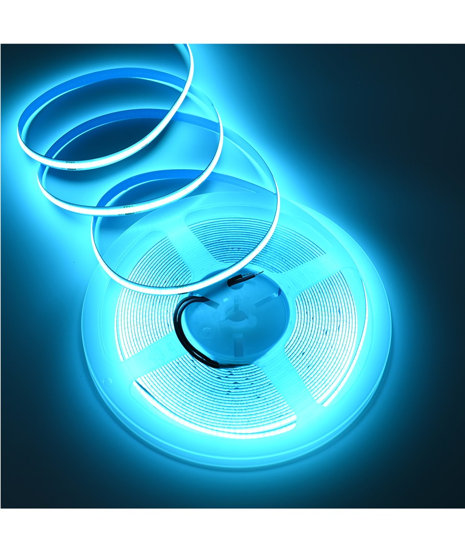 Enfärgad turkos COB LED strip med 320 LED per meter.