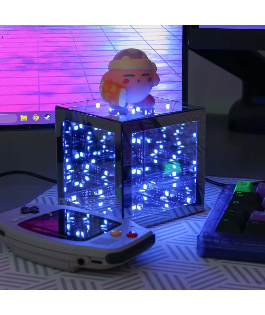 Infinity Cube levereras med en praktisk fjärrkontroll som gör det enkelt att justera färger och ljuseffekter utan att lämna soffan. Dessutom ansluts den enkelt via USB, vilket möjliggör flexibel placering i hemmet eller på kontoret.
