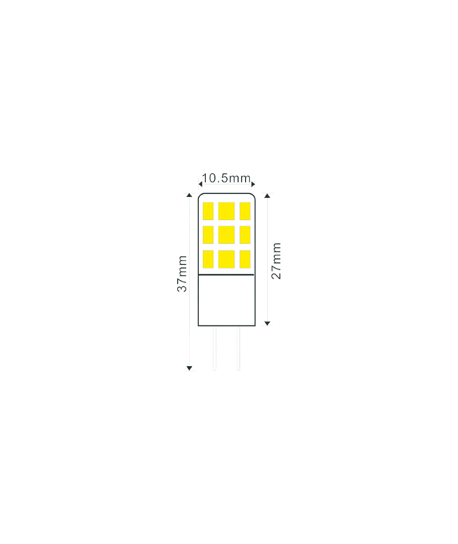 För en stabil och säker funktion, ska lampan anslutas till 12V DC. Med sina kompakta dimensioner på 37 x Ø10,5 mm, passar den utmärkt i mindre armaturer där utrymmet är begränsat.