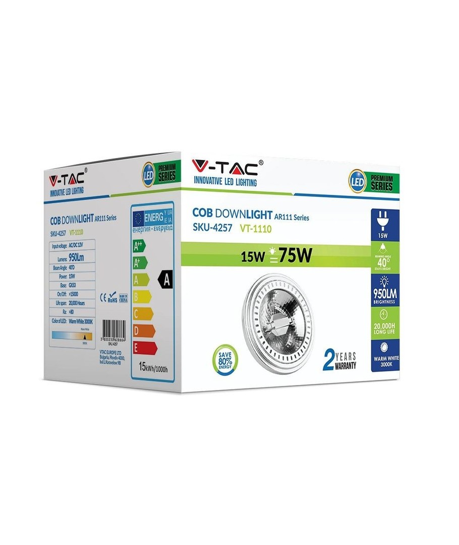 V-Tac 15W LED spotlight är en energieffektiv belysning som erbjuder ett högkvalitativt ljus som både är skonsamt mot ögat och miljön.