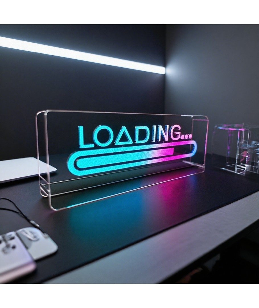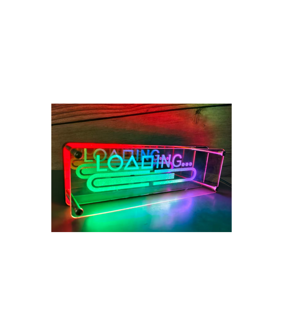 Ta din gaming setup till nästa nivå med denna LOADING skylt! Få ditt rum att lysa upp i äkta RGB-stil.