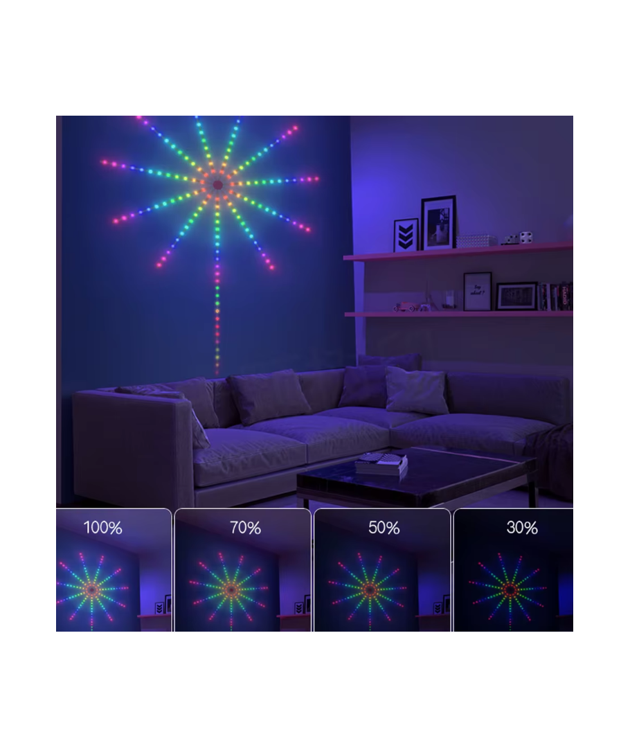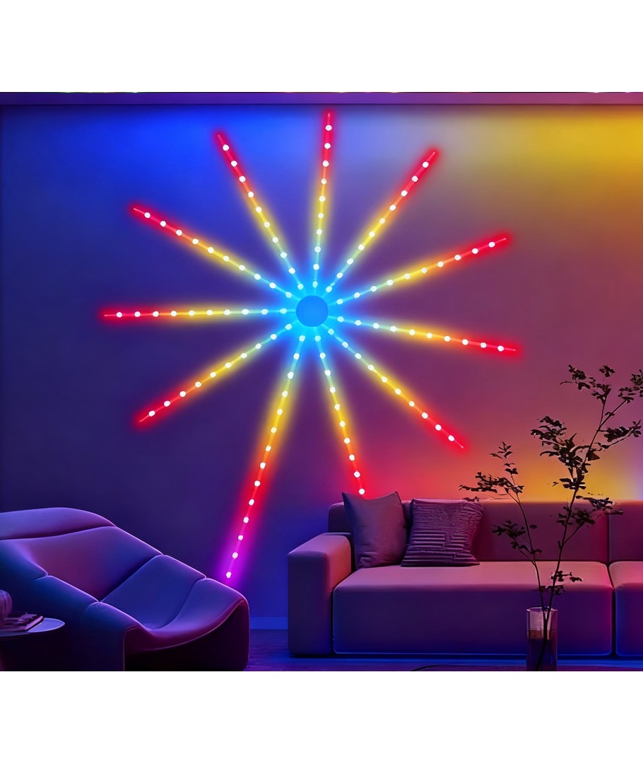 Upplev en festlig atmosfär med vår Fyrverkeri LED-remsa, som erbjuder en imponerande ljusshow styrd via bluetooth-app eller fjärrkontroll.